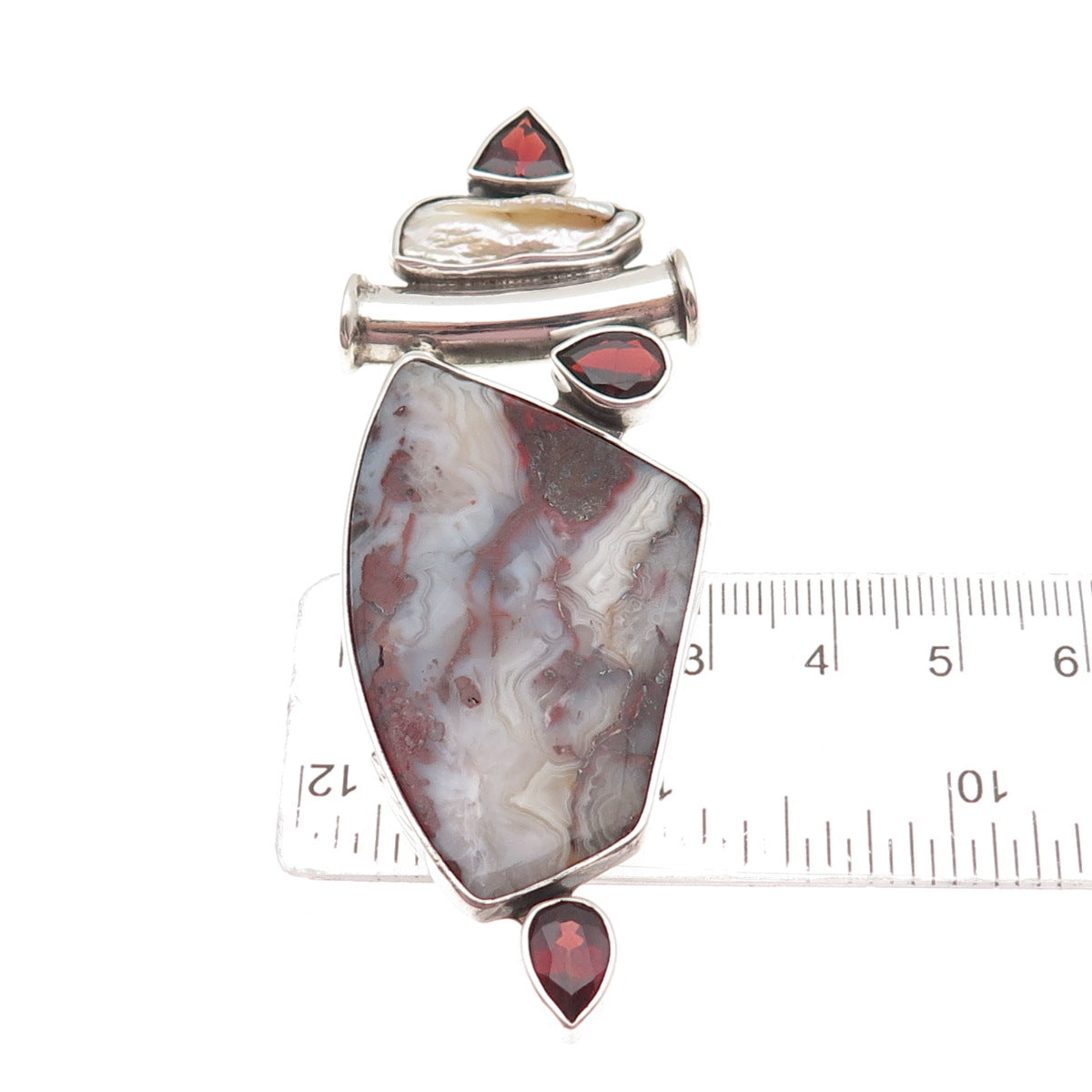 Charles Albert 925 Sterling Silver Vintage Real Agate Pearl Garnet Slide Pendant