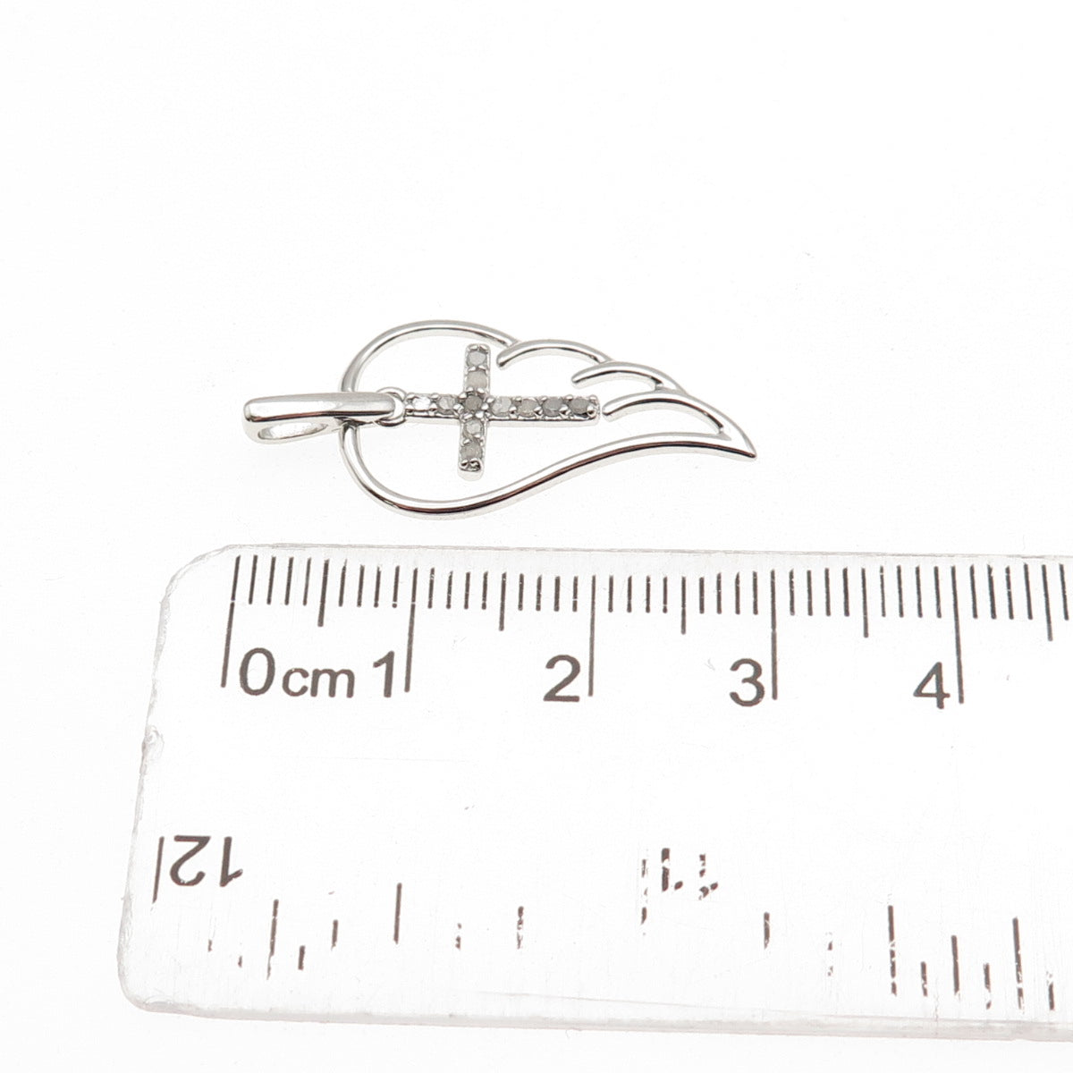 Charles Winston 925 Sterling Silver Real Diamond Cross Angel Wing Charm Pendant