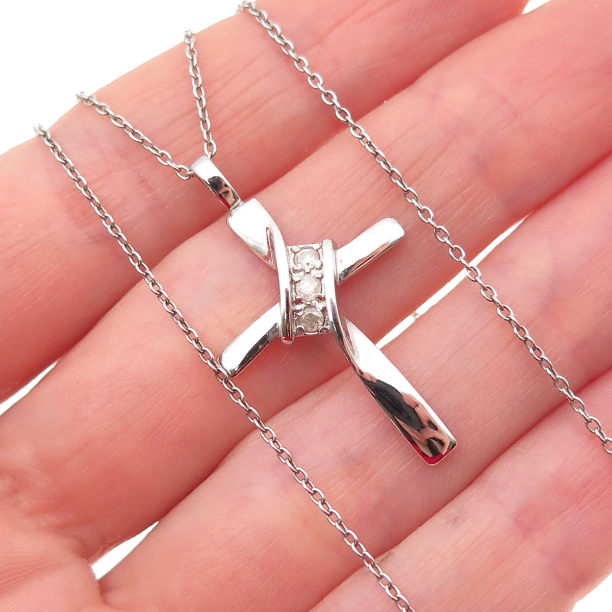 Charles Winston 925 Sterling Silver Real Diamond Cross Cable Chain Necklace 18"