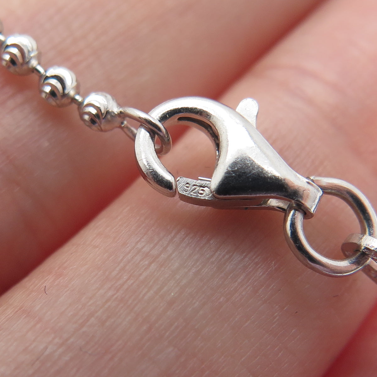 CHRYSOS 925 Sterling Silver Italy Diamond-Cut Ball Beaded Chain Necklace 28"