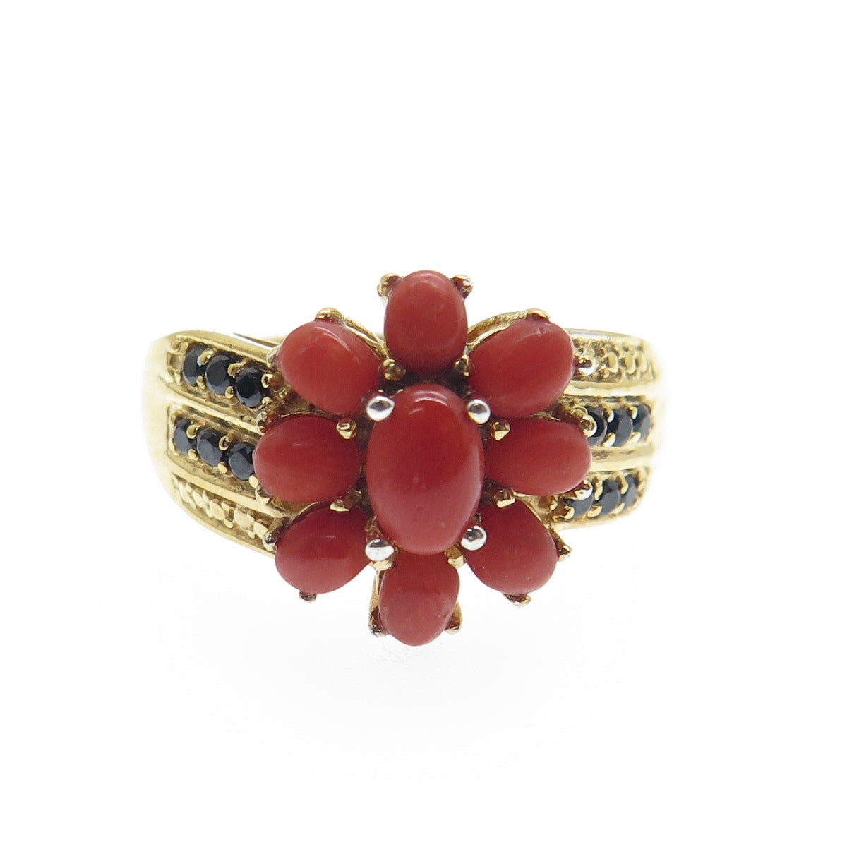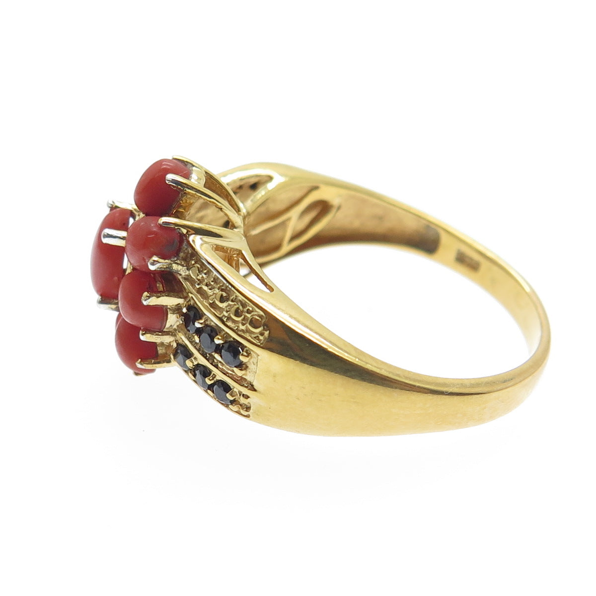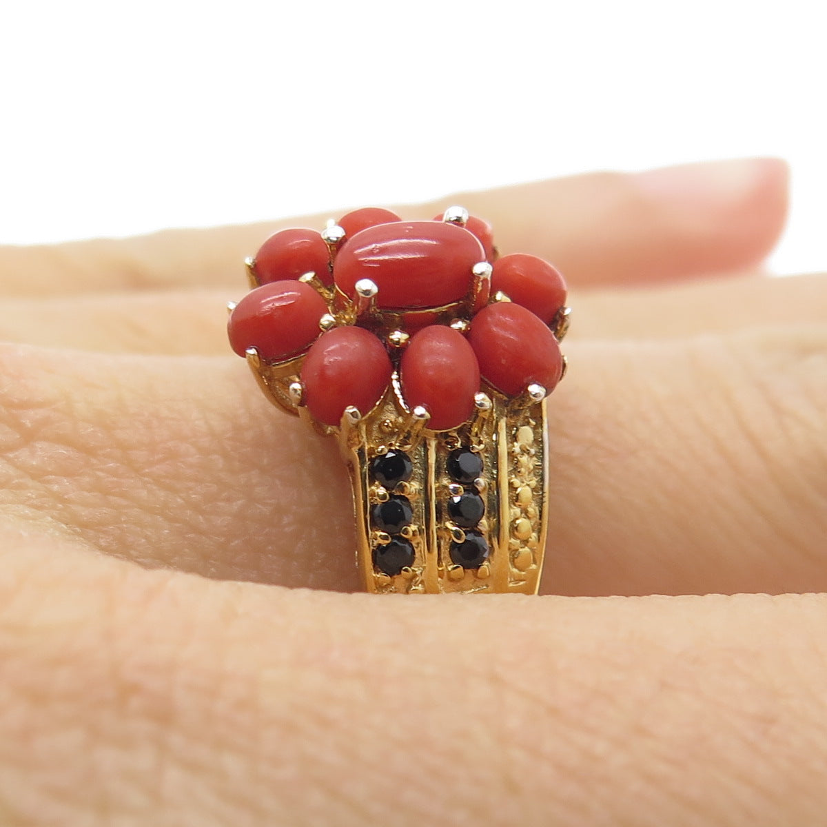 CHUCK CLEMENCY 925 Sterling Gold Plated Coral & Black Spinel Gem Ring Size 9.25