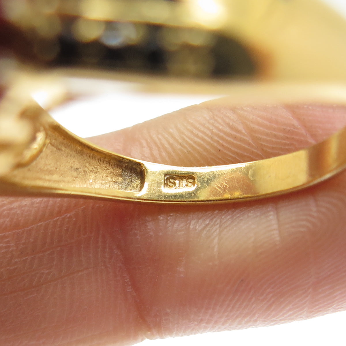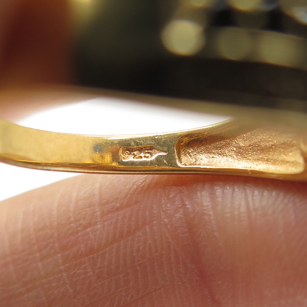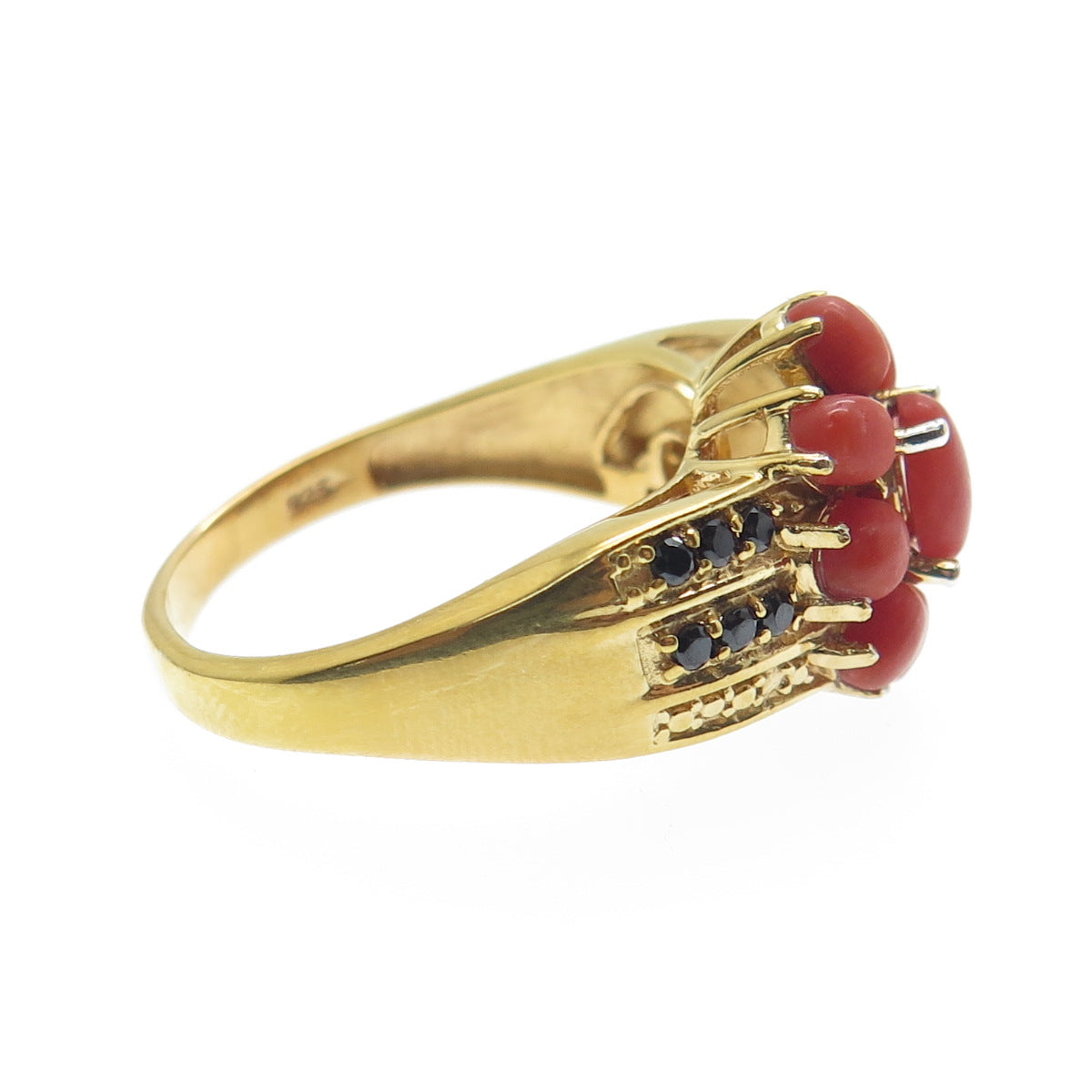 CHUCK CLEMENCY 925 Sterling Gold Plated Coral & Black Spinel Gem Ring Size 9.25