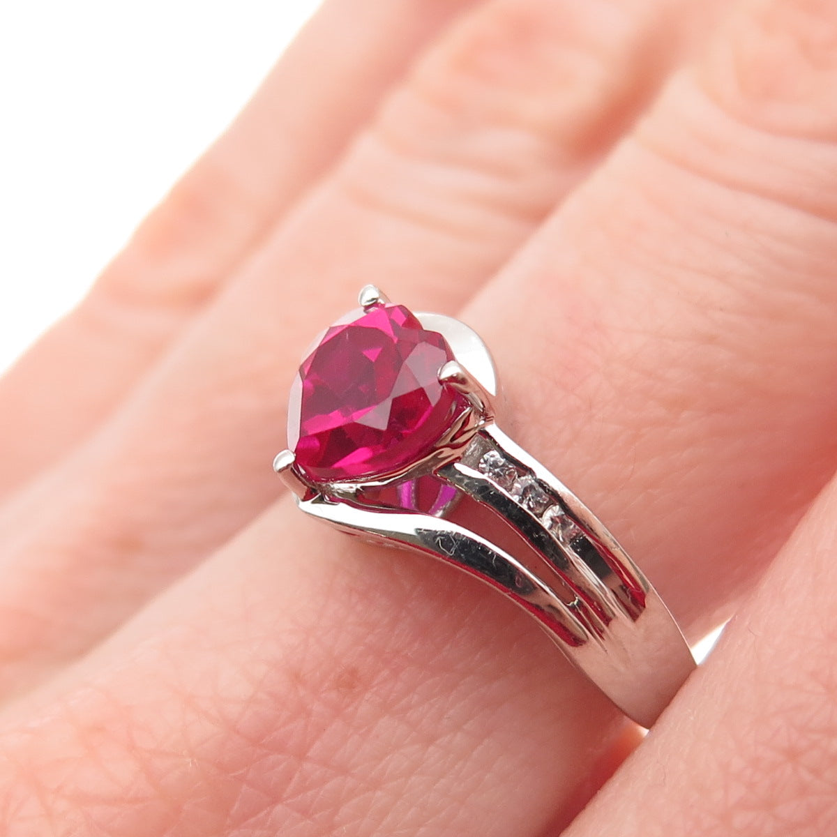 Chuck Clemency 925 Sterling Lab-Created Ruby & White Topaz Heart Ring Size 6.75