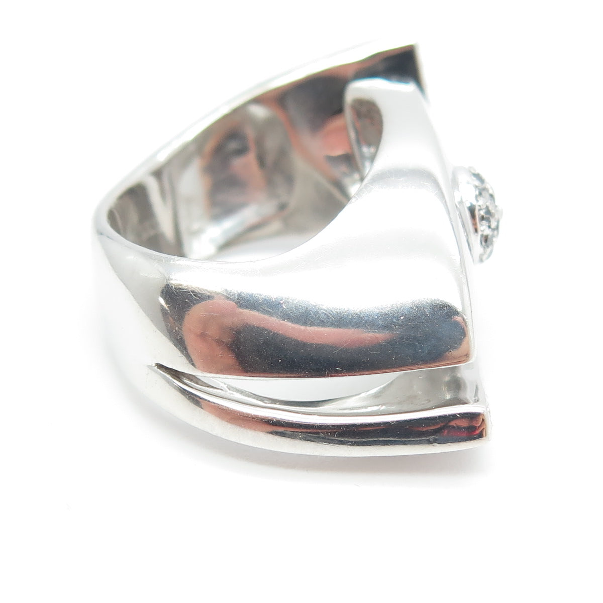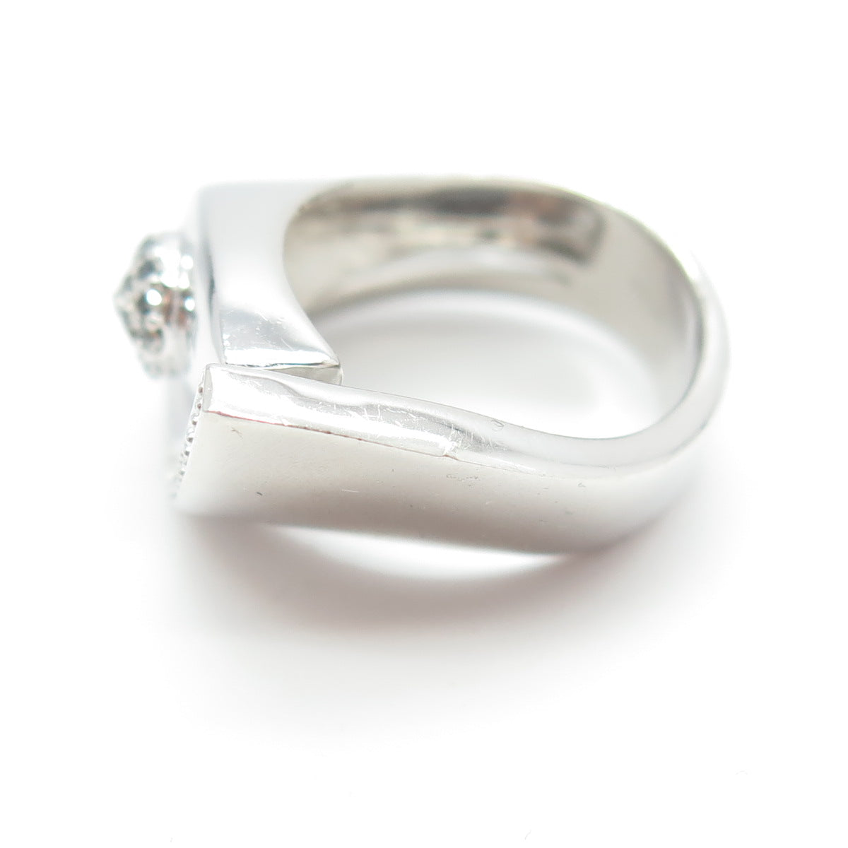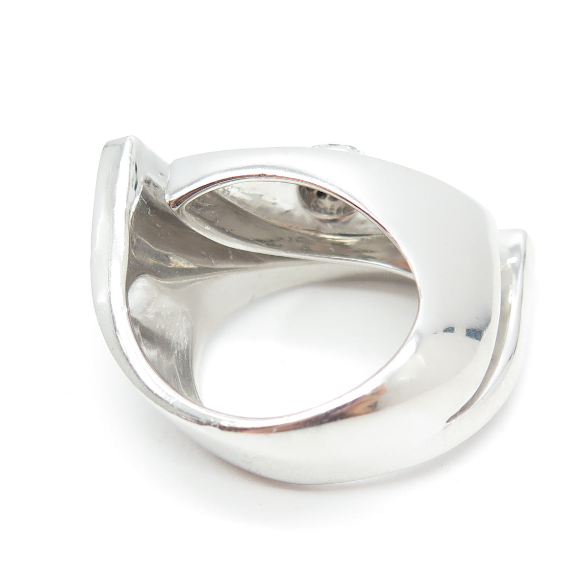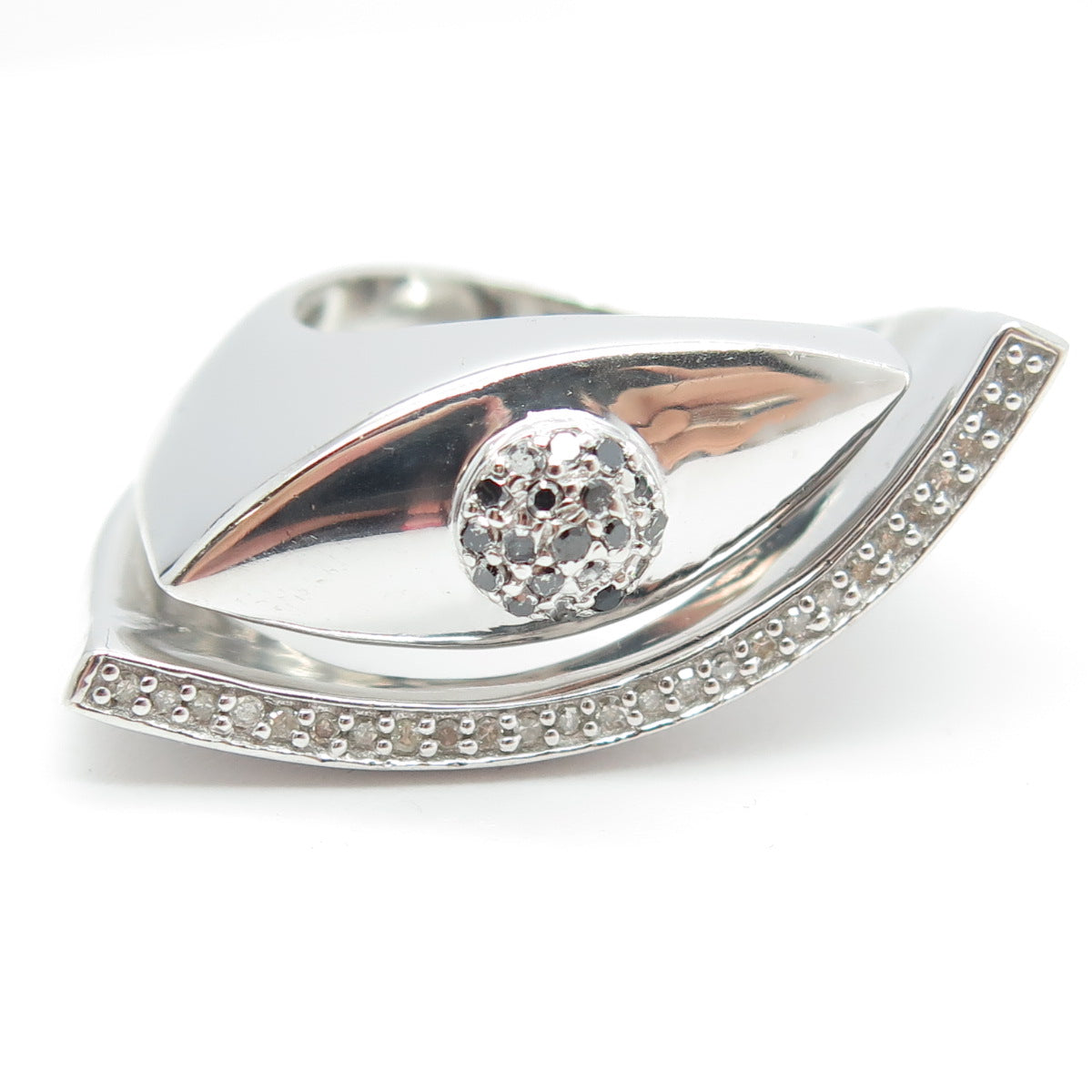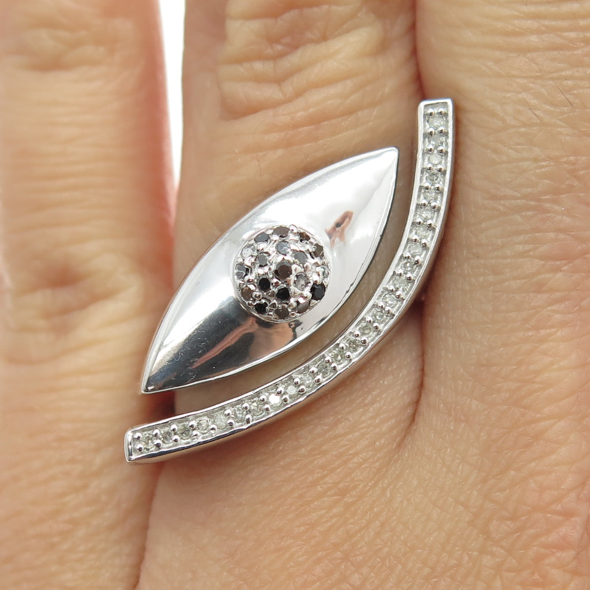 CHUCK CLEMENCY 925 Sterling Silver Real Black & White Diamond Eye Ring Size 5.75