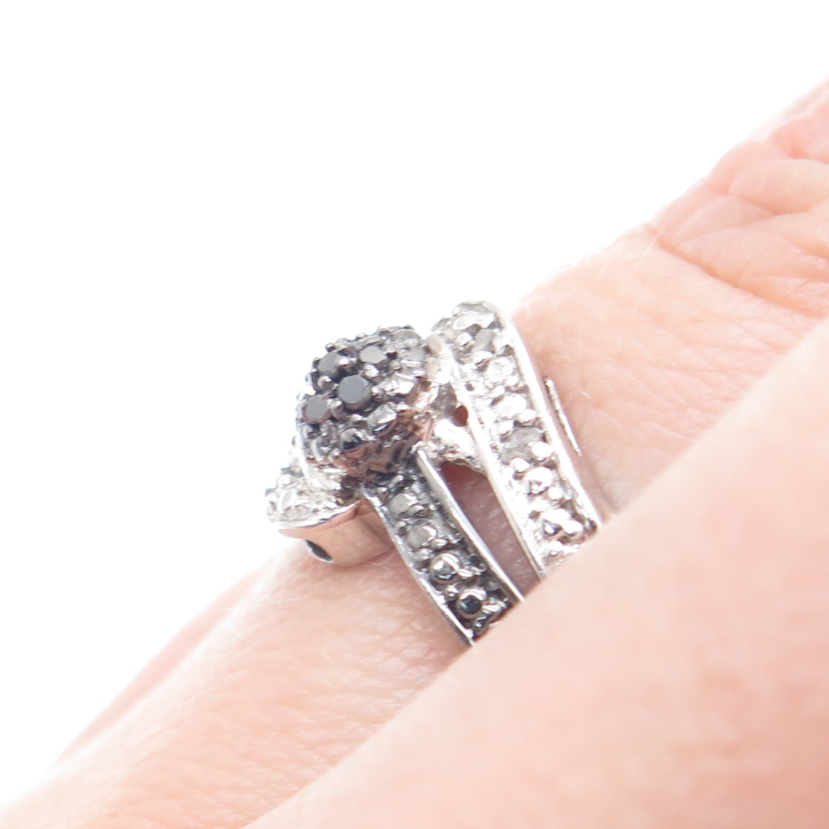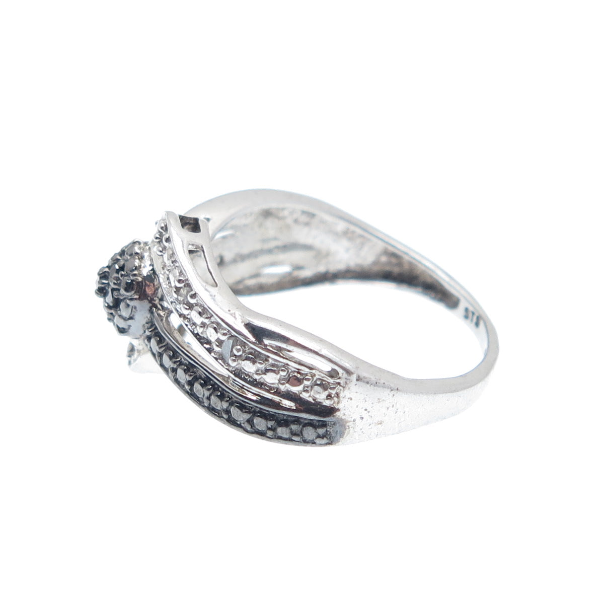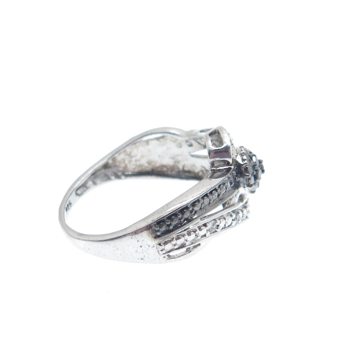 CHUCK CLEMENCY 925 Sterling Silver Real Black & White Diamond Ring Size 6.25
