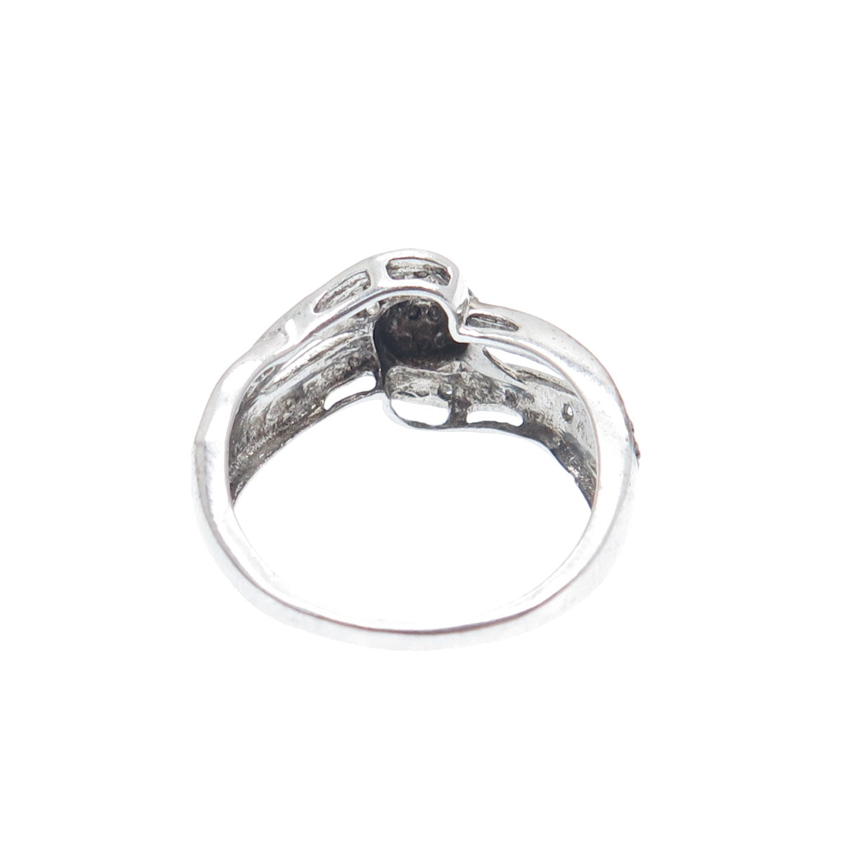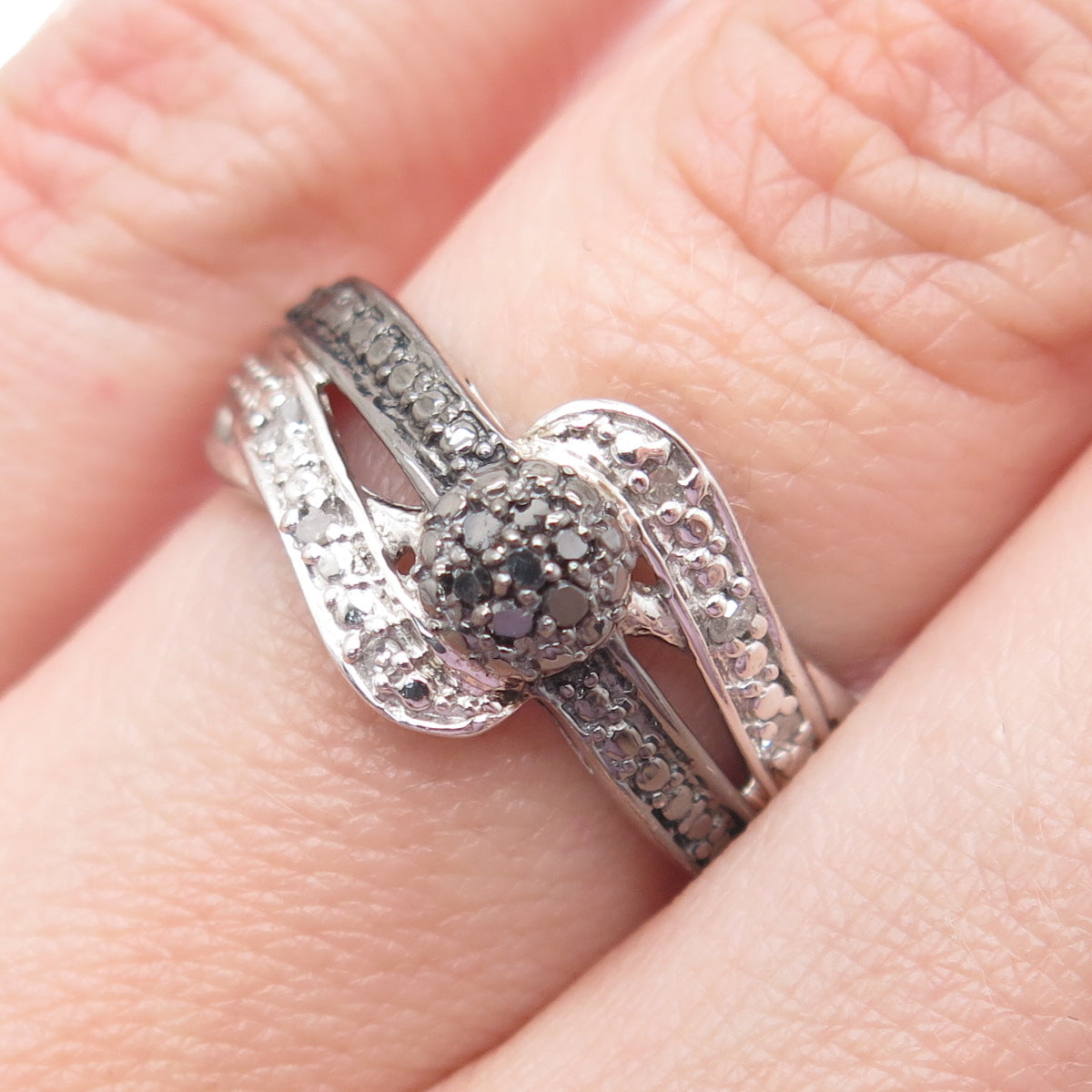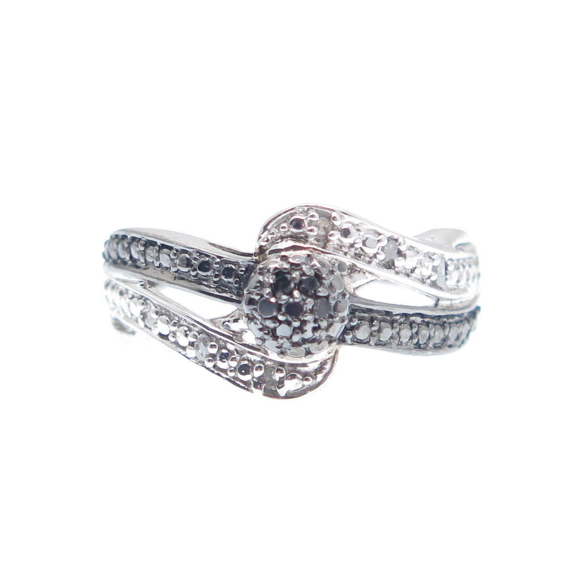 CHUCK CLEMENCY 925 Sterling Silver Real Black & White Diamond Ring Size 6.25