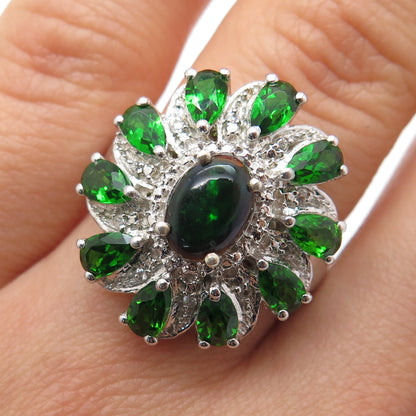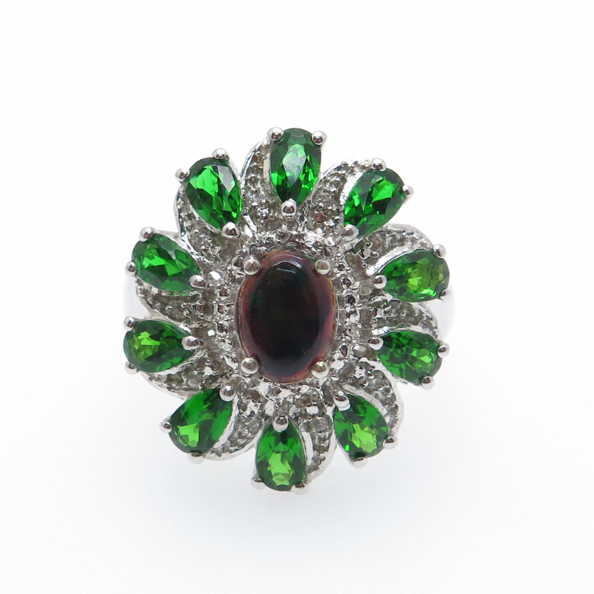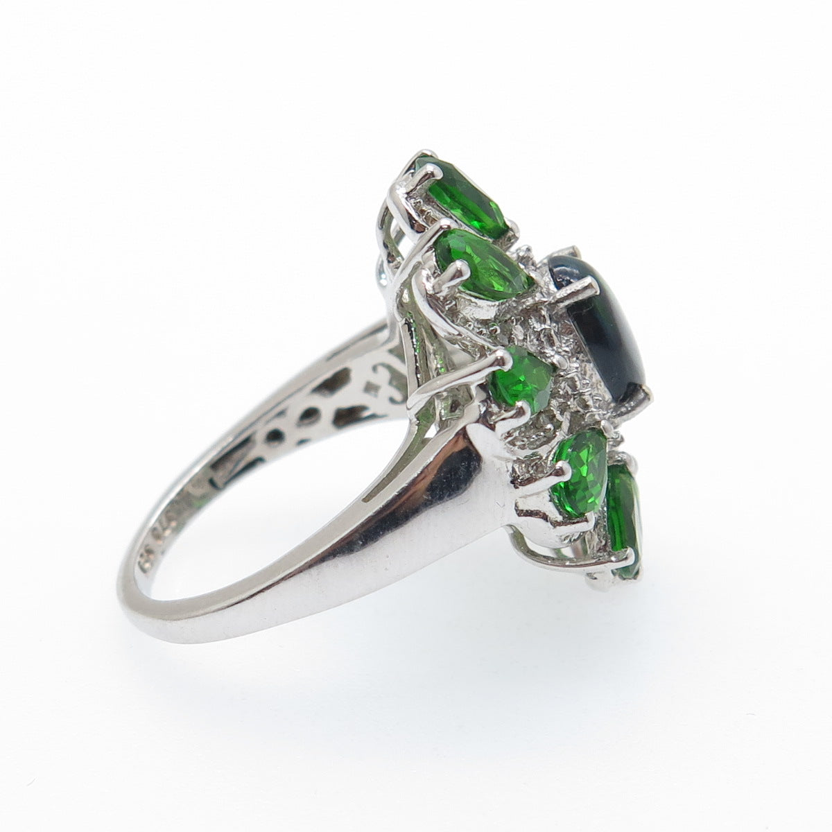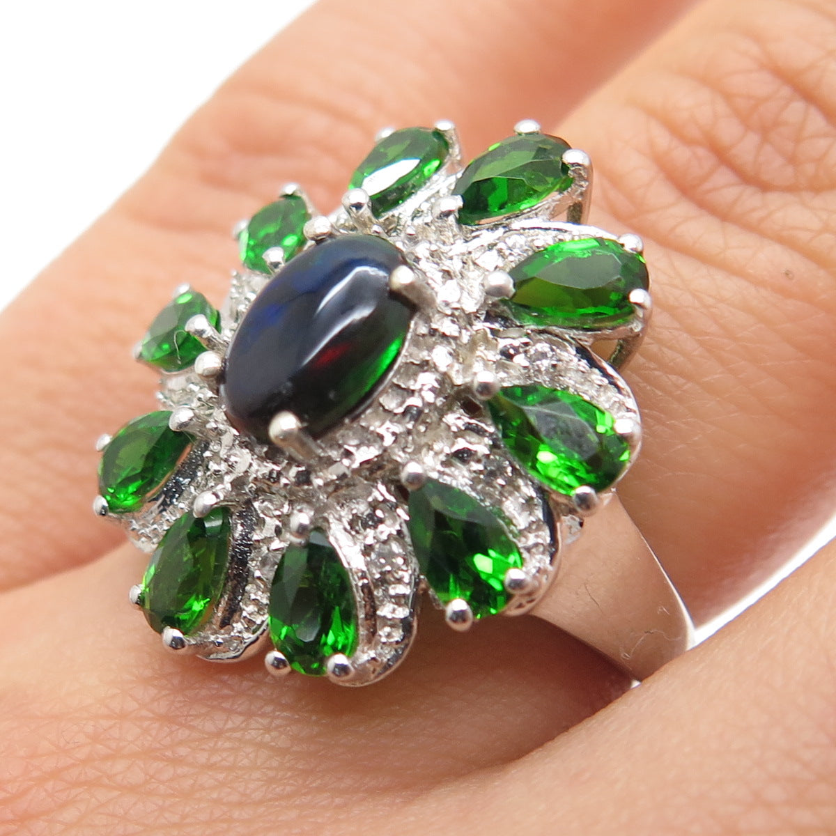 CHUCK CLEMENCY 925 Sterling Silver Real Opal Peridot White Topaz Ring Size 6.25
