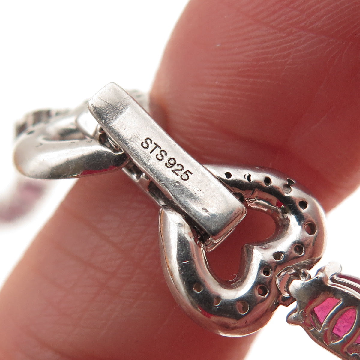 Chuck Clemency 925 Sterling Silver Real Ruby & White Topaz Chain Necklace 18"