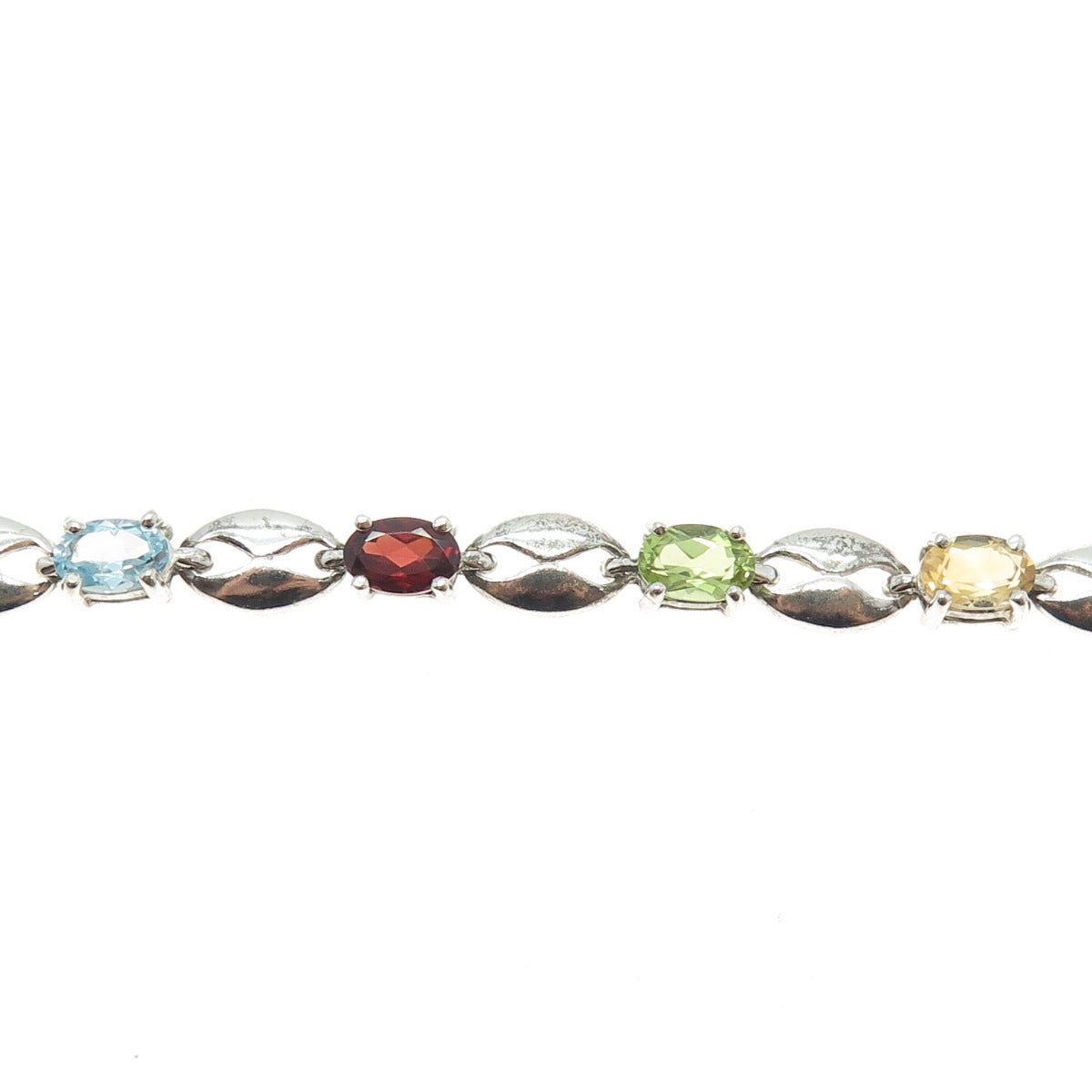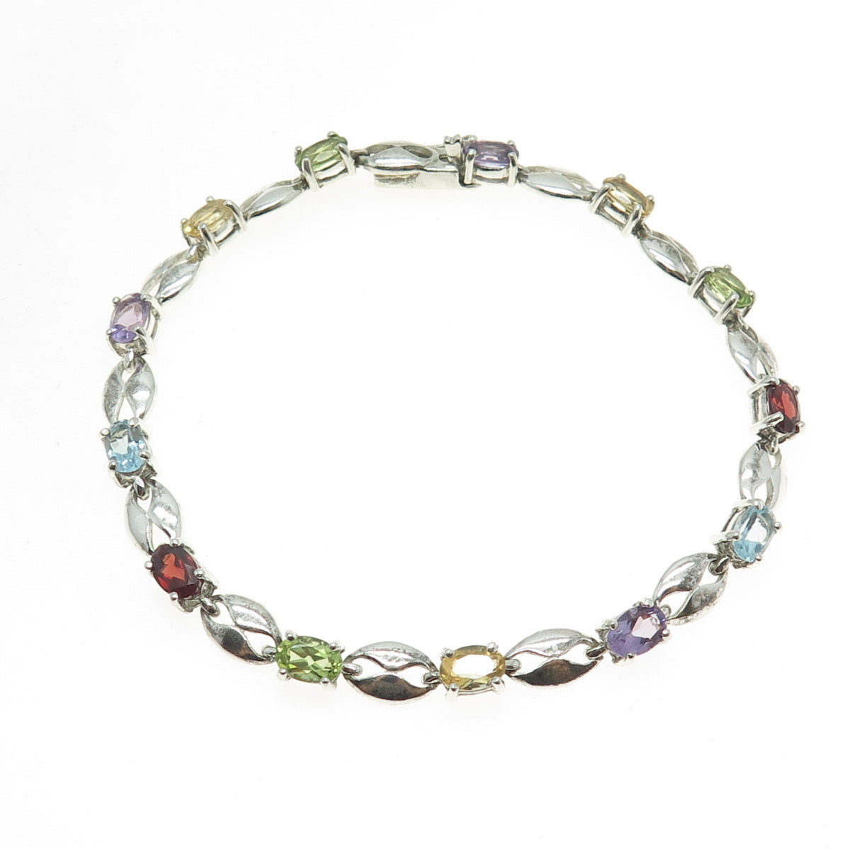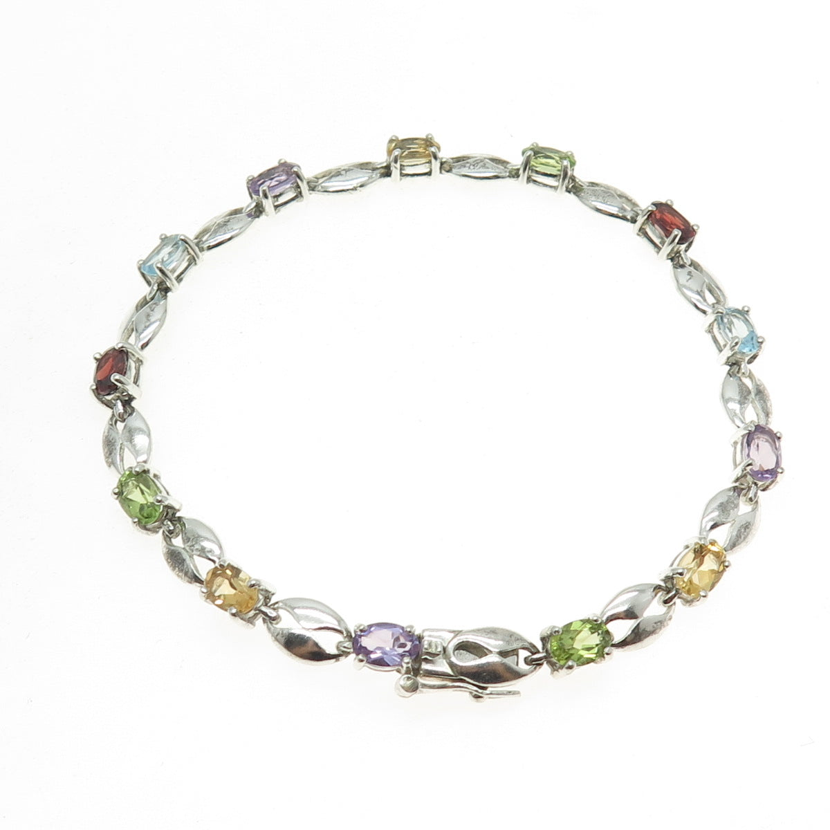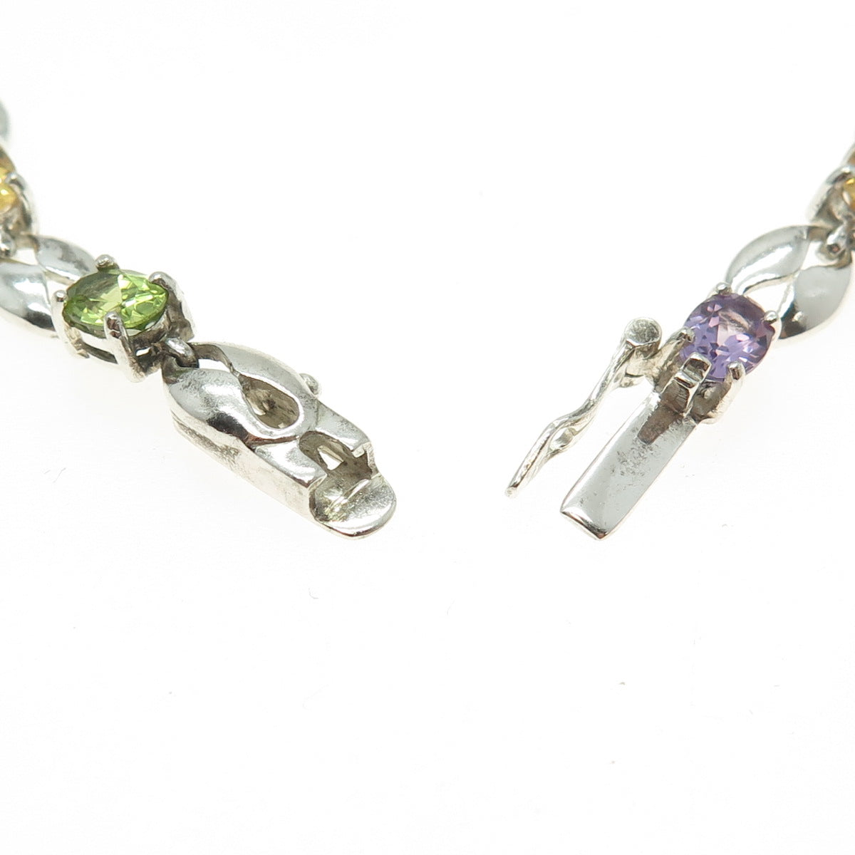 CHUCK CLEMENCY 925 Sterling Silver Vintage Citrine Peridot Gem Bracelet 7.5"