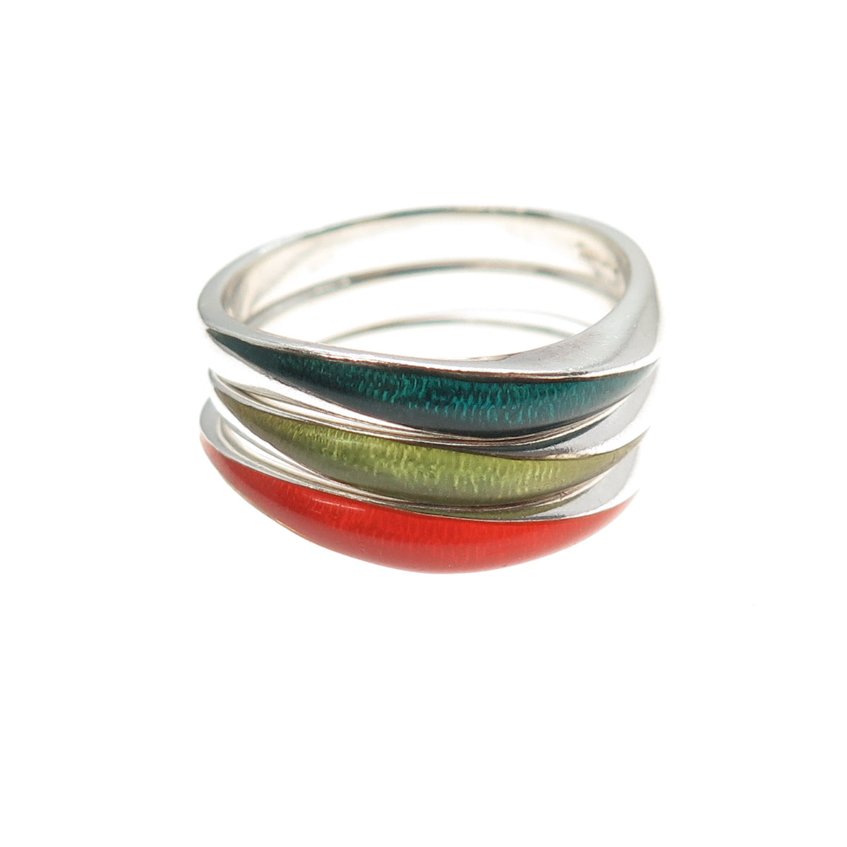 CNA PRANDA Sterling Silver Vintage Enamel SET of 3 Stackable Band Ring Size 9