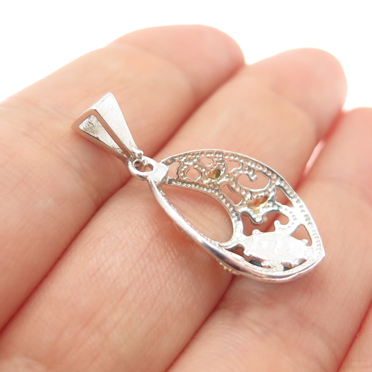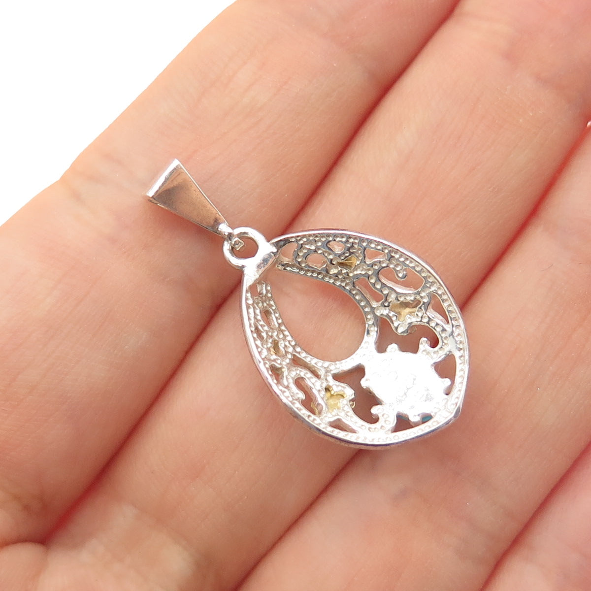 COLEMAN CO 12K Rose & Yellow Gold Sterling Silver Vintage Real Turquoise Pendant