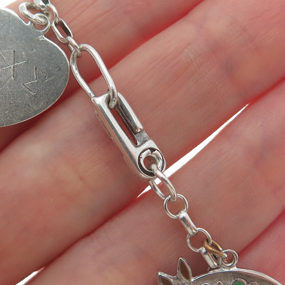 COLEMAN & S. NYE Sterling Antique Enamel Turquoise Multi-Charm Bracelet 7.25"