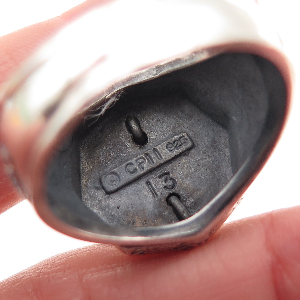 CPII 925 Sterling Silver Vintage Real Black Onyx Vitruvian Man Ring Size 12.5