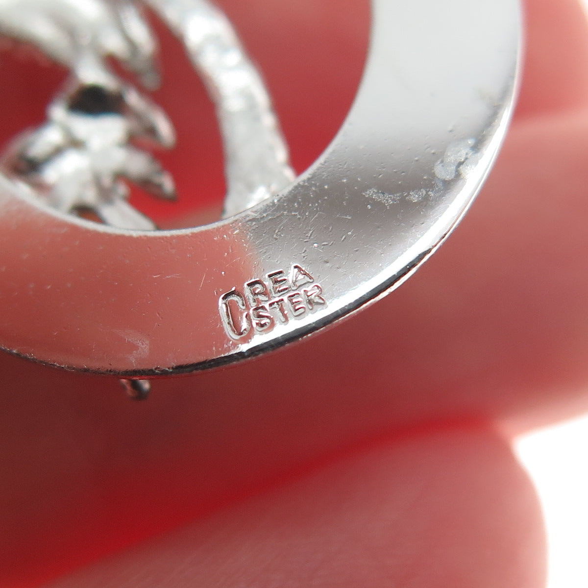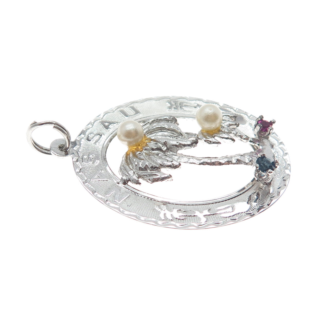CREA 925 Sterling Silver Vintage Real Pearl Rhinestone Nassau Palm Tree Pendant