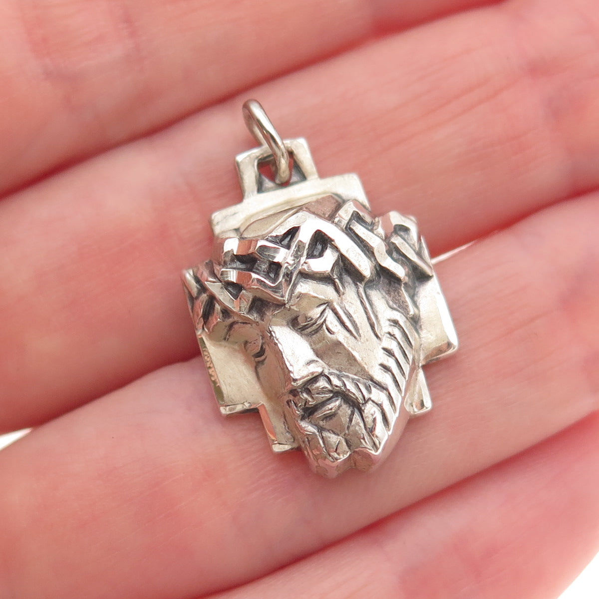 Creed 925 Sterling Silver Vintage Jesus Cross Oxidized Charm Pendant