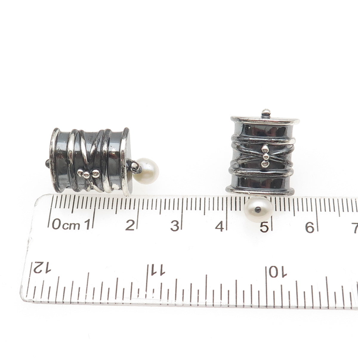 DAC Deborah Armstrong 925 Sterling Silver Vintage Real Pearl Modernist Earrings