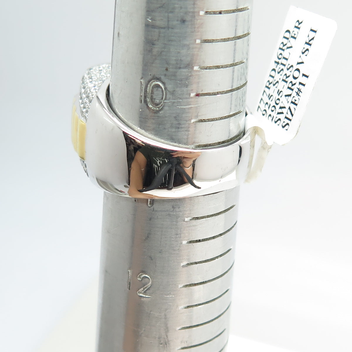 DADWANI 925 Sterling Silver 2-Tone Pave Swarovski Crystal Ring Size 11