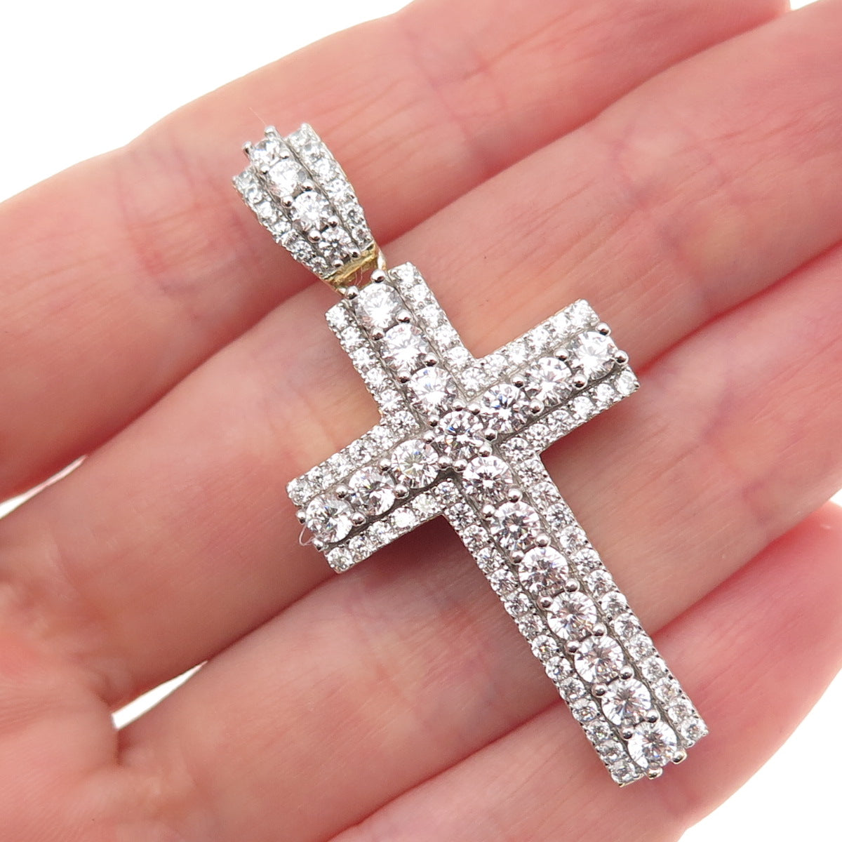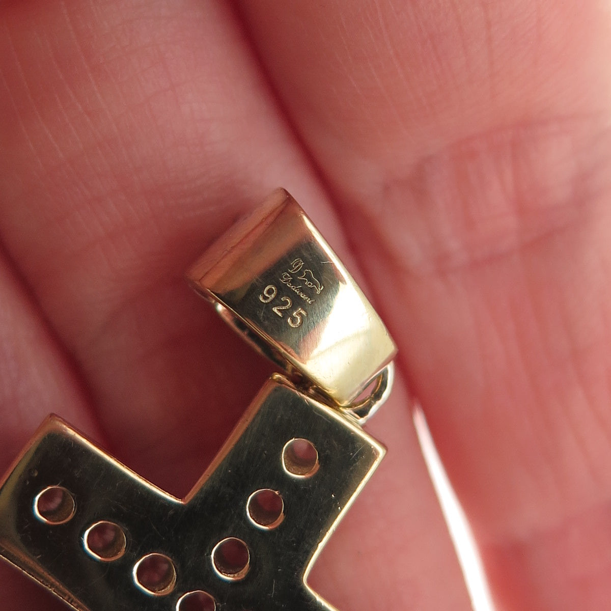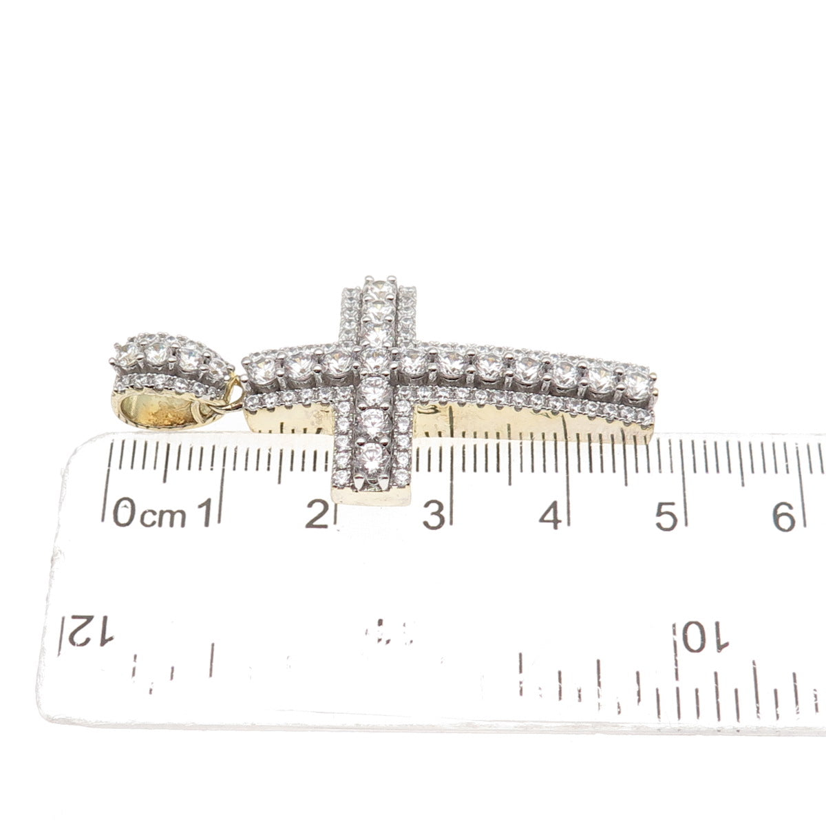 Dadwani 925 Sterling Silver Gold Plated Round-Cut C Z Cross Pendant