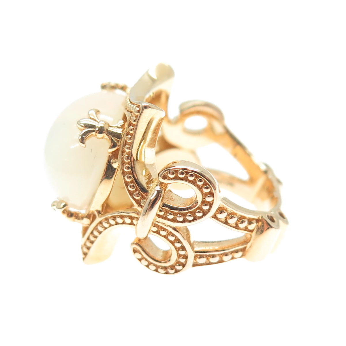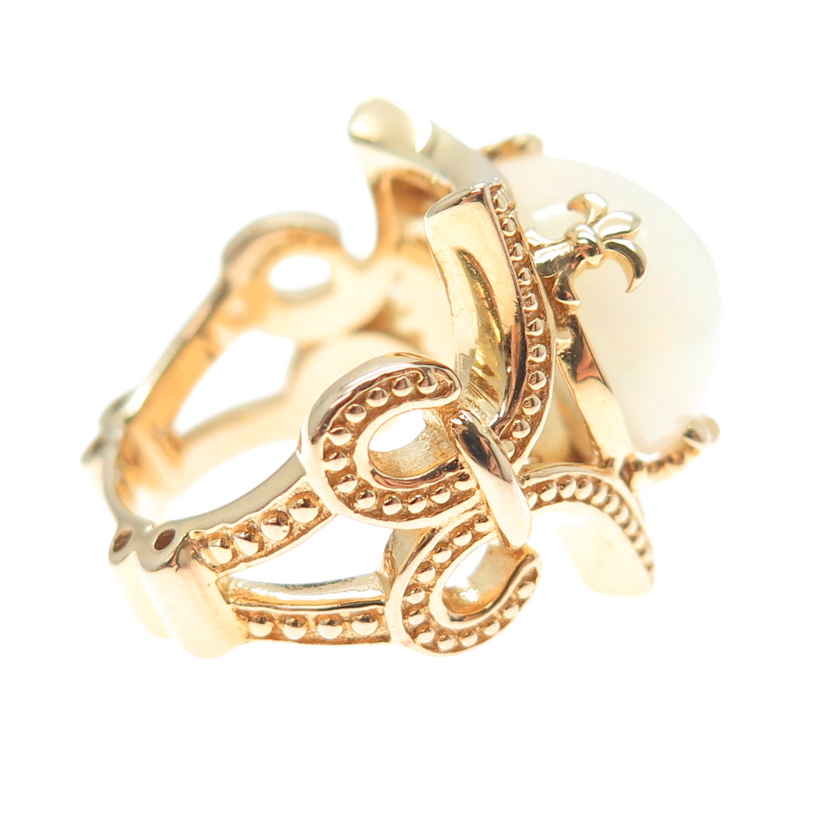DALLAS PRINCE 925 Sterling Silver Gold Plated Real Cabochon Opal Ring Size 5.5