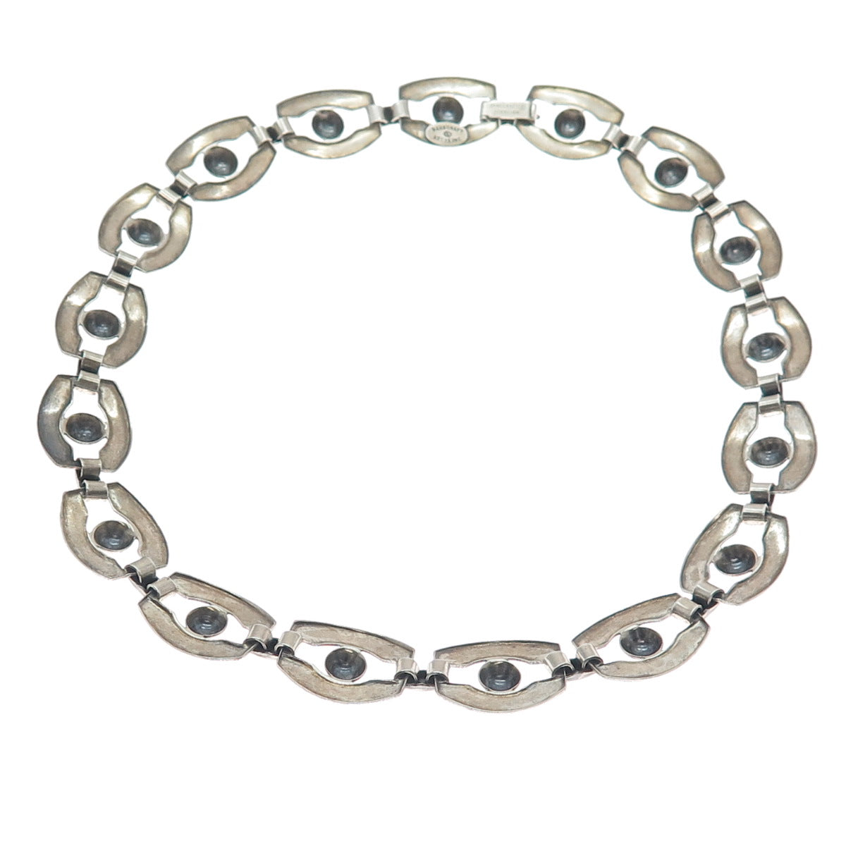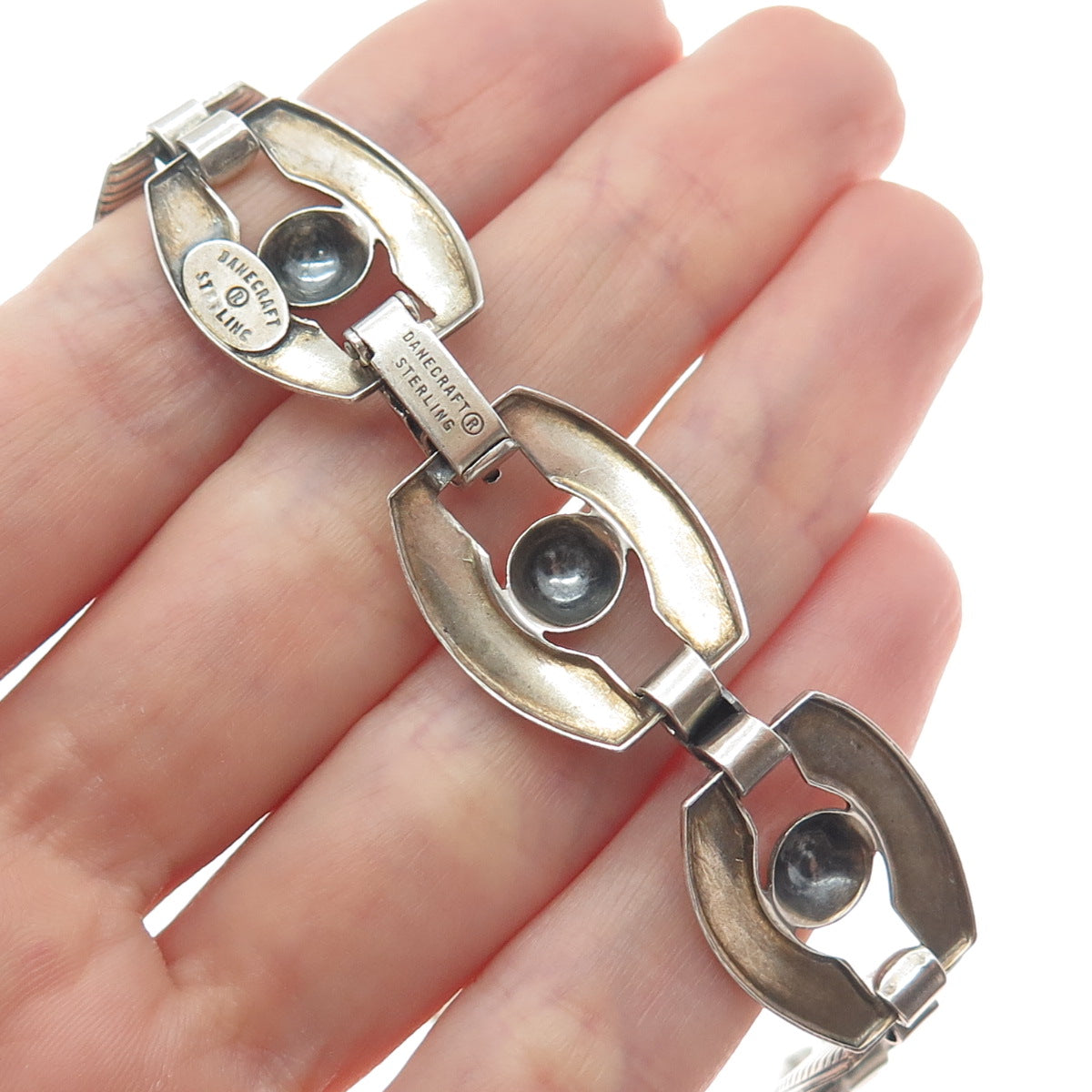 DANECRAFT 925 Sterling Silver Antique Art Deco Beaded Panel Chain Necklace 16"