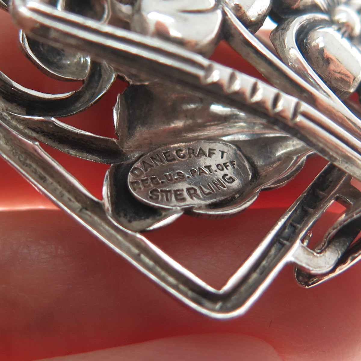 DANECRAFT 925 Sterling Silver Antique Art Deco Flower Panel Link Bracelet 7"
