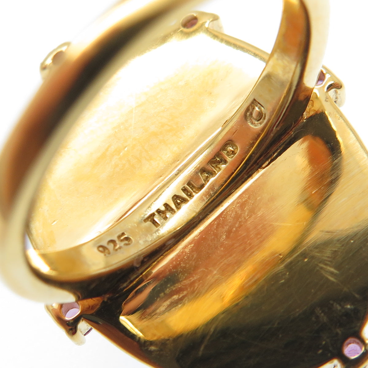 DASAN INC 925 Sterling Silver Gold Plated Real Opal Inlay & Amethyst Ring Size 5