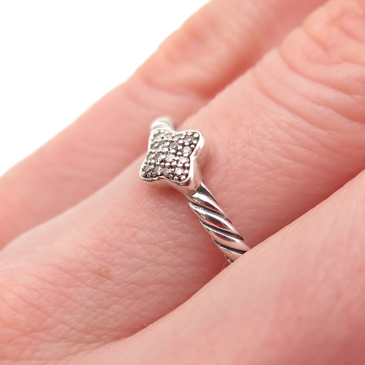 DAVID YURMAN Sterling Real Diamond Cable Collectibles Quatrefoil Ring Size 5.75