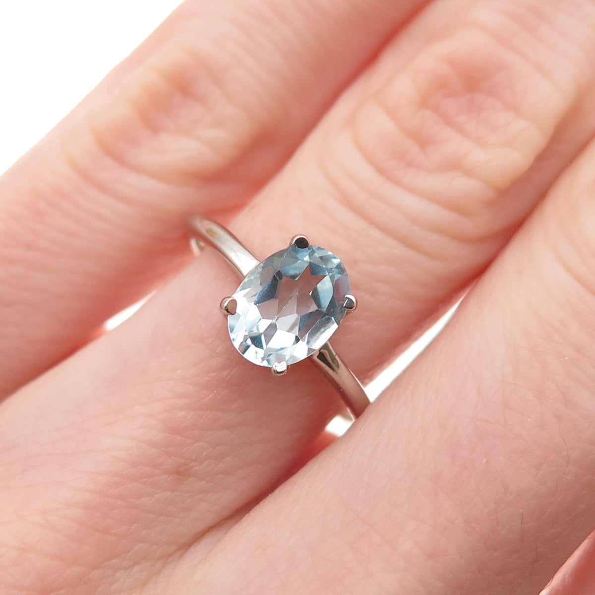 Dazzlers 925 Sterling Silver Real Oval-Cut Blue Topaz Ring Size 6