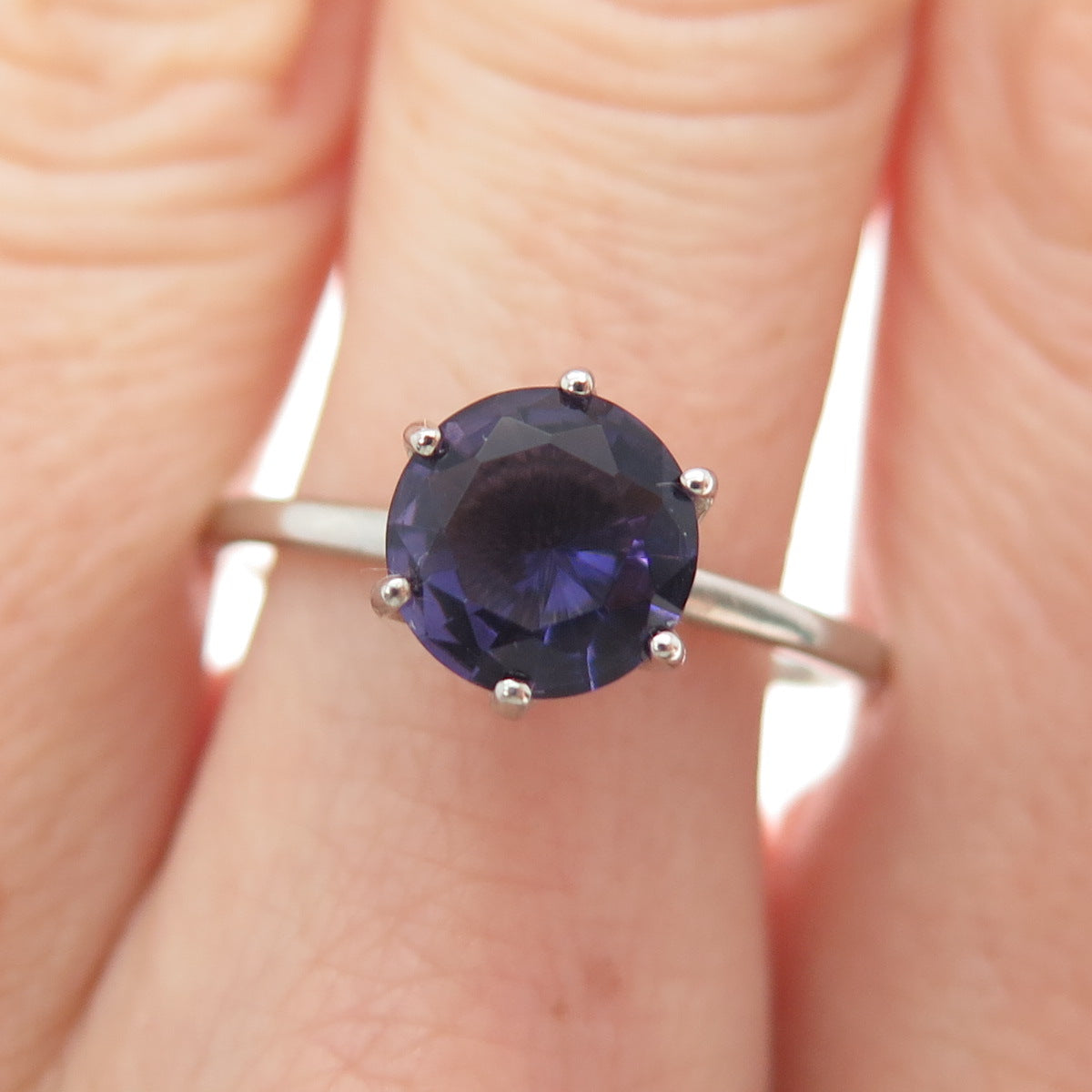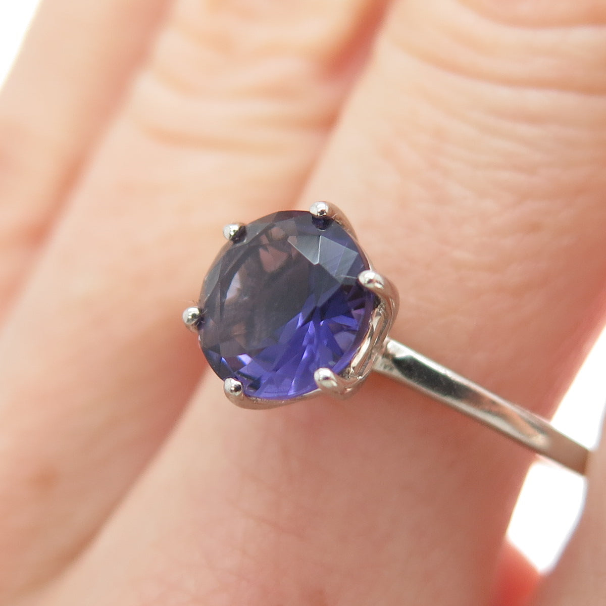 DAZZLERS 925 Sterling Silver Round-Cut Nano Amethyst Ring Size 10
