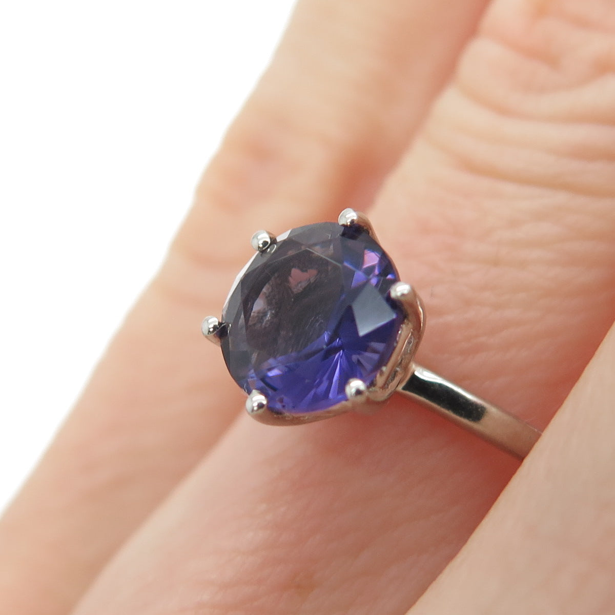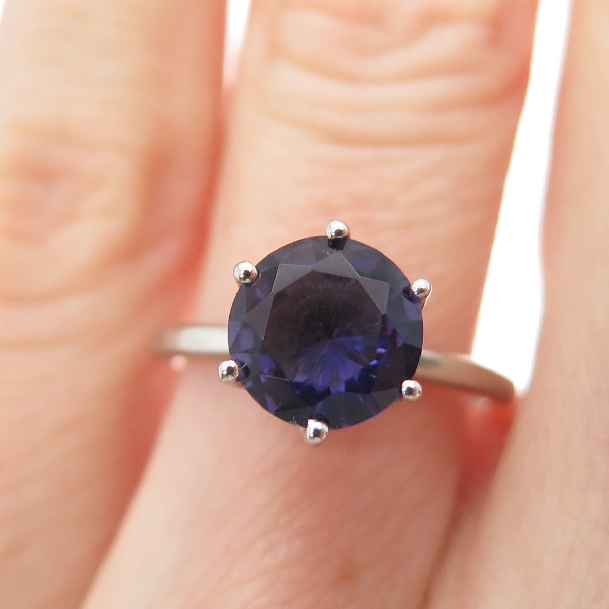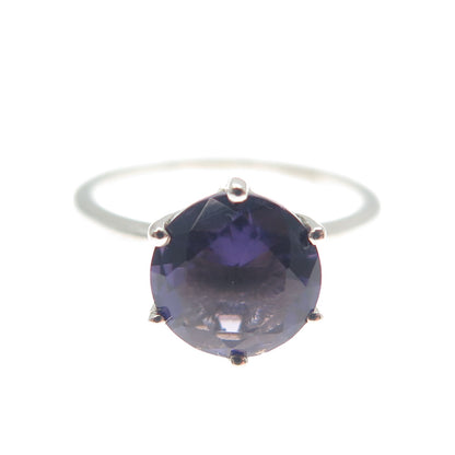 DAZZLERS 925 Sterling Silver Round-Cut Nano Amethyst Ring Size 5.25