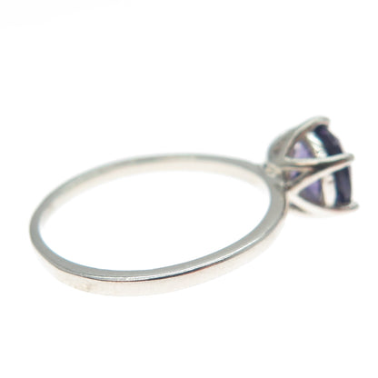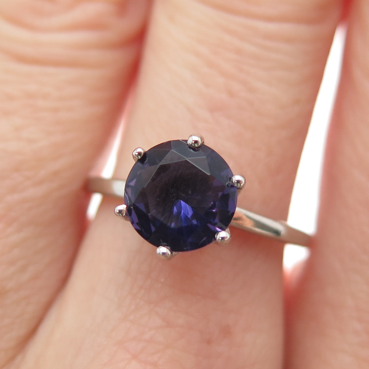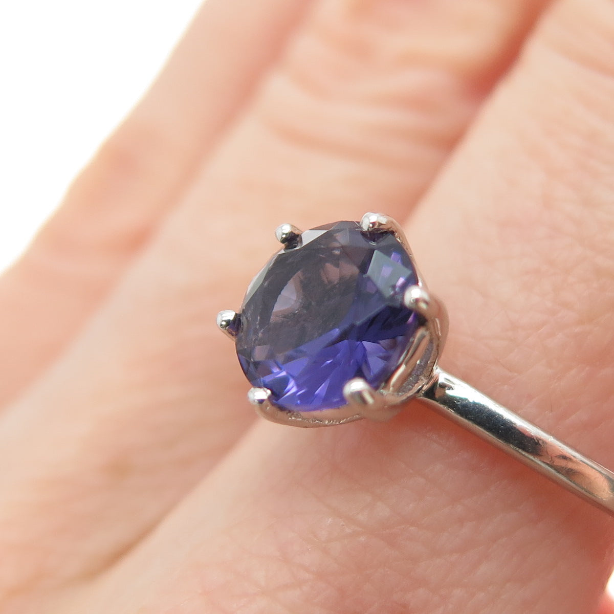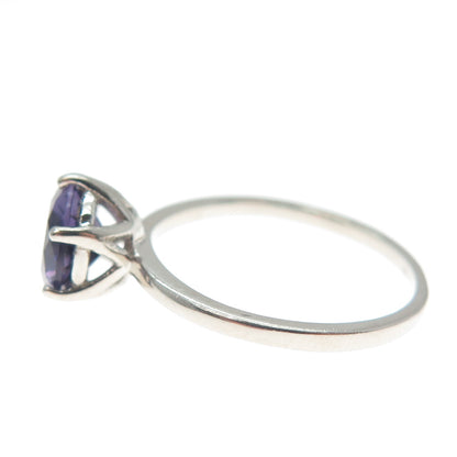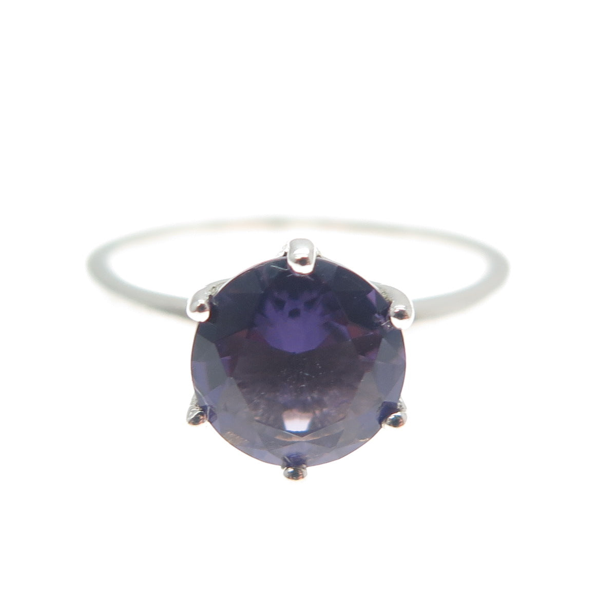 DAZZLERS 925 Sterling Silver Round-Cut Nano Amethyst Ring Size 7
