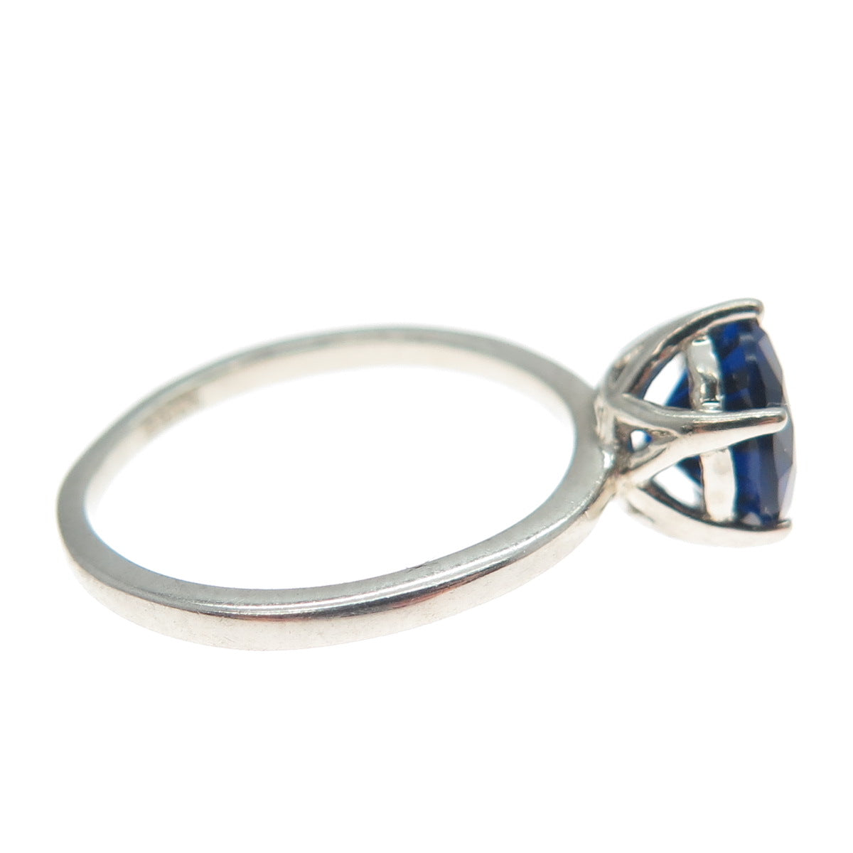 DAZZLERS 925 Sterling Silver Round-Cut Nano Blue Sapphire Ring Size 5.5