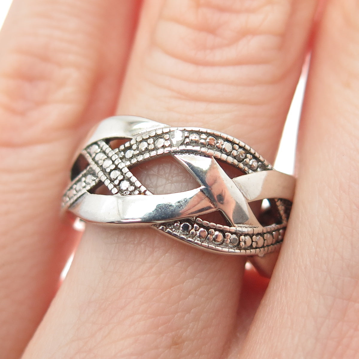 DBJ DEE BERKLE 925 Sterling Silver Real Diamond Accent Woven Ring Size 6