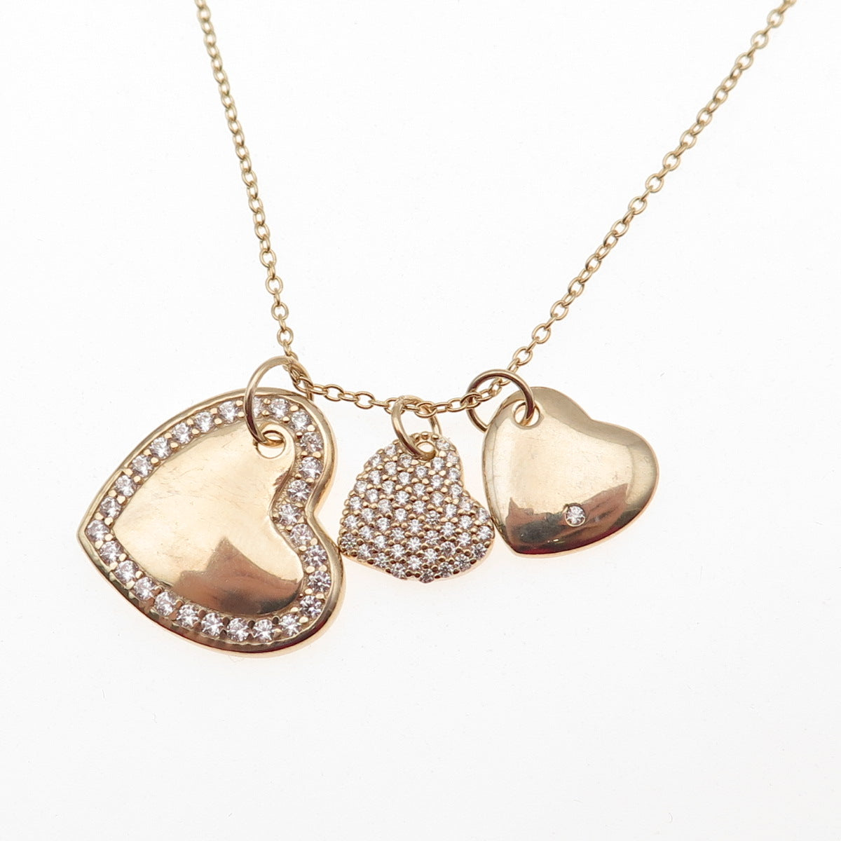 DEE BERKLE 925 Sterling Silver Gold Plated C Z Heart Cable Chain Necklace 16-20"