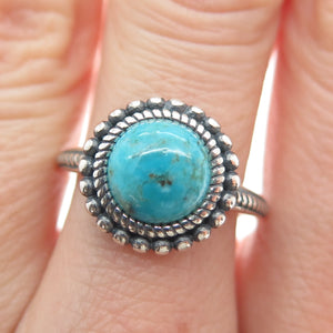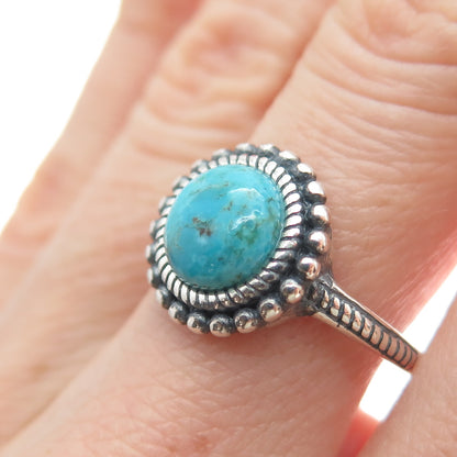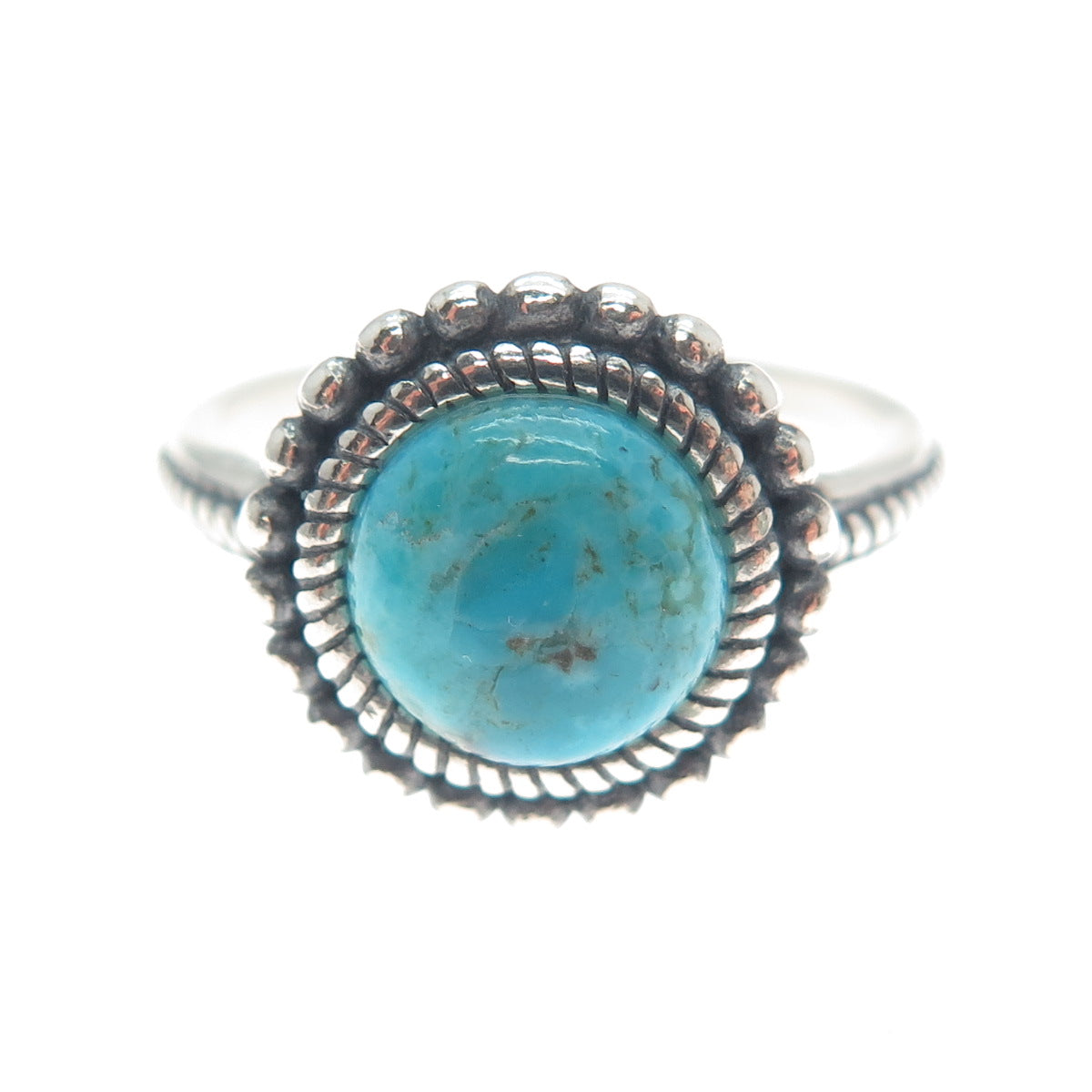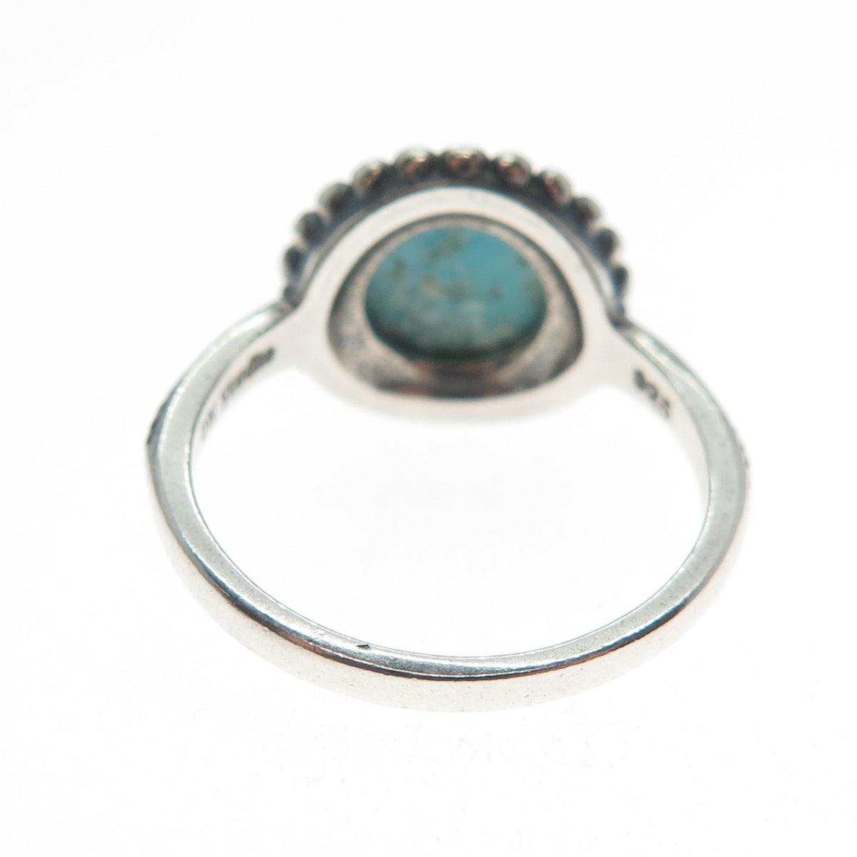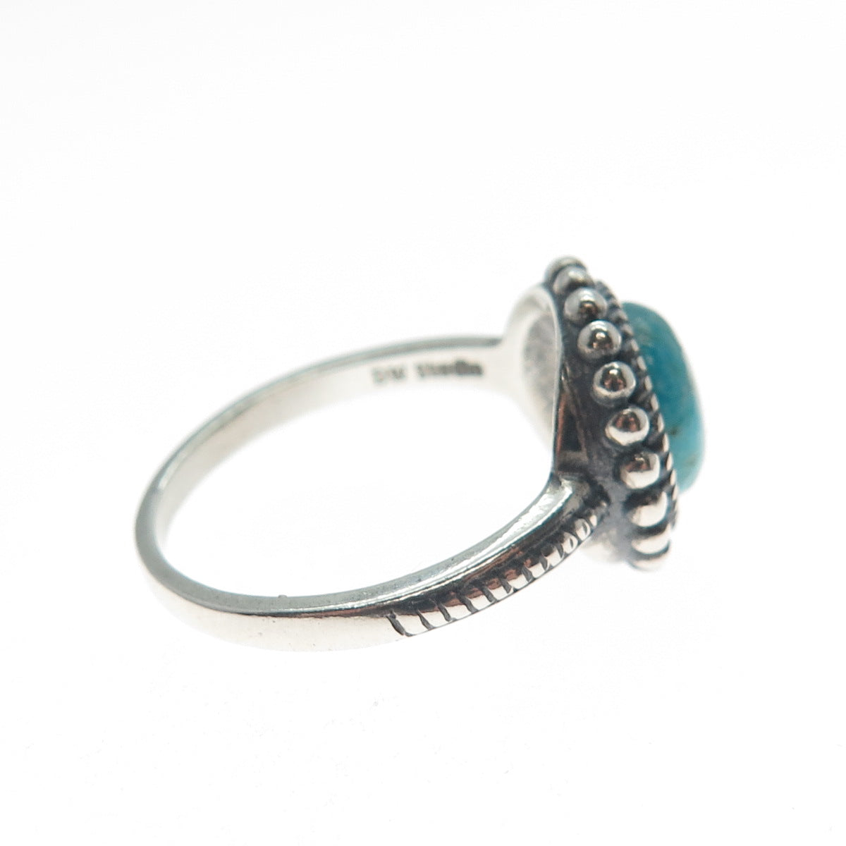 DESERT WIND 925 Sterling Silver Southwestern Real Turquoise Beaded Ring Size 7