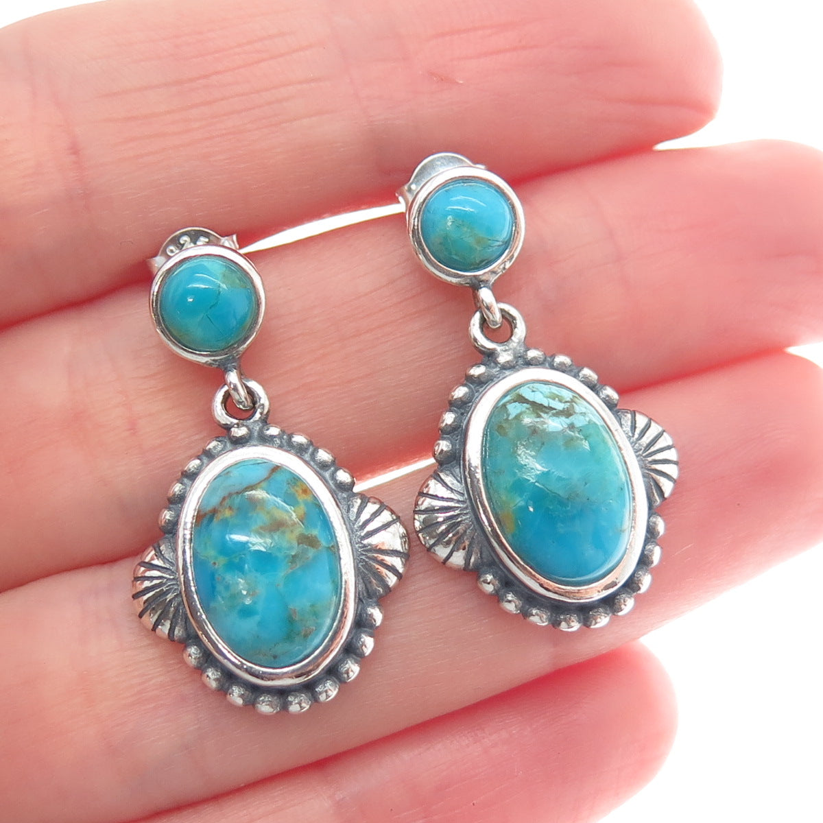 DESERT WIND 925 Sterling Silver Southwestern Real Turquoise Dangle Earrings