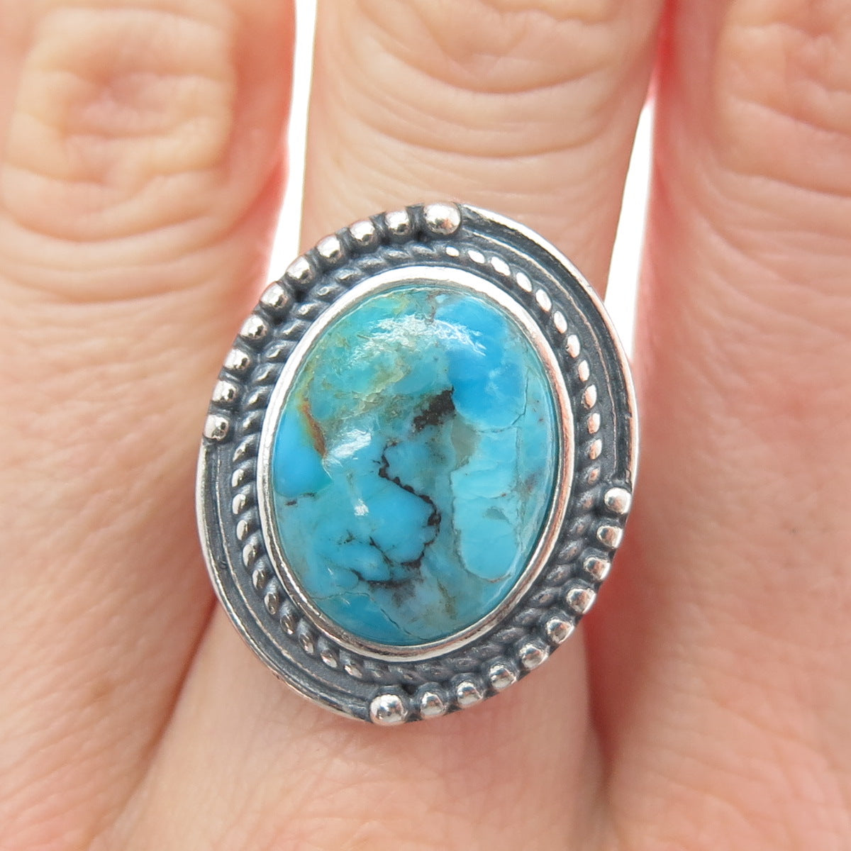 DESERT WIND 925 Sterling Silver Southwestern Real Turquoise Ring Size 7