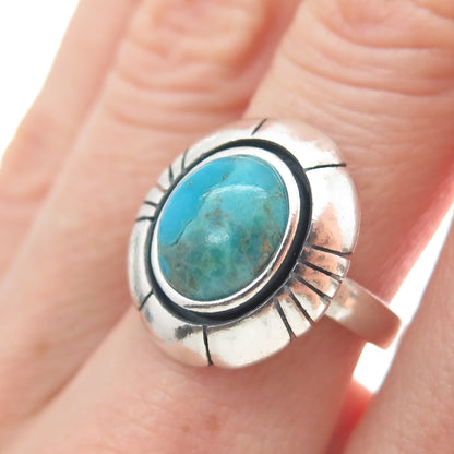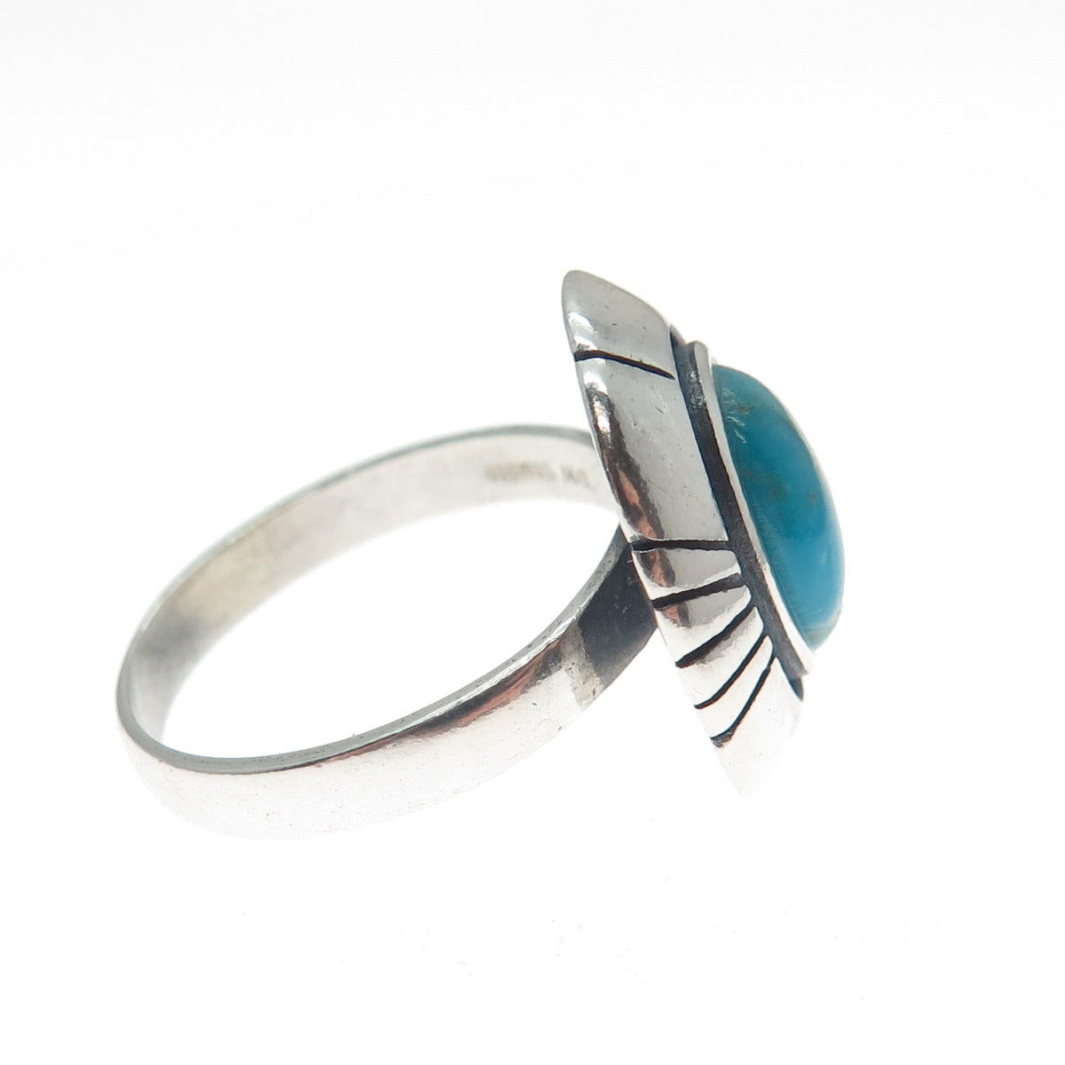 DESERT WIND Sterling Silver Southwestern Real Kingman Turquoise Ring Size 7.25