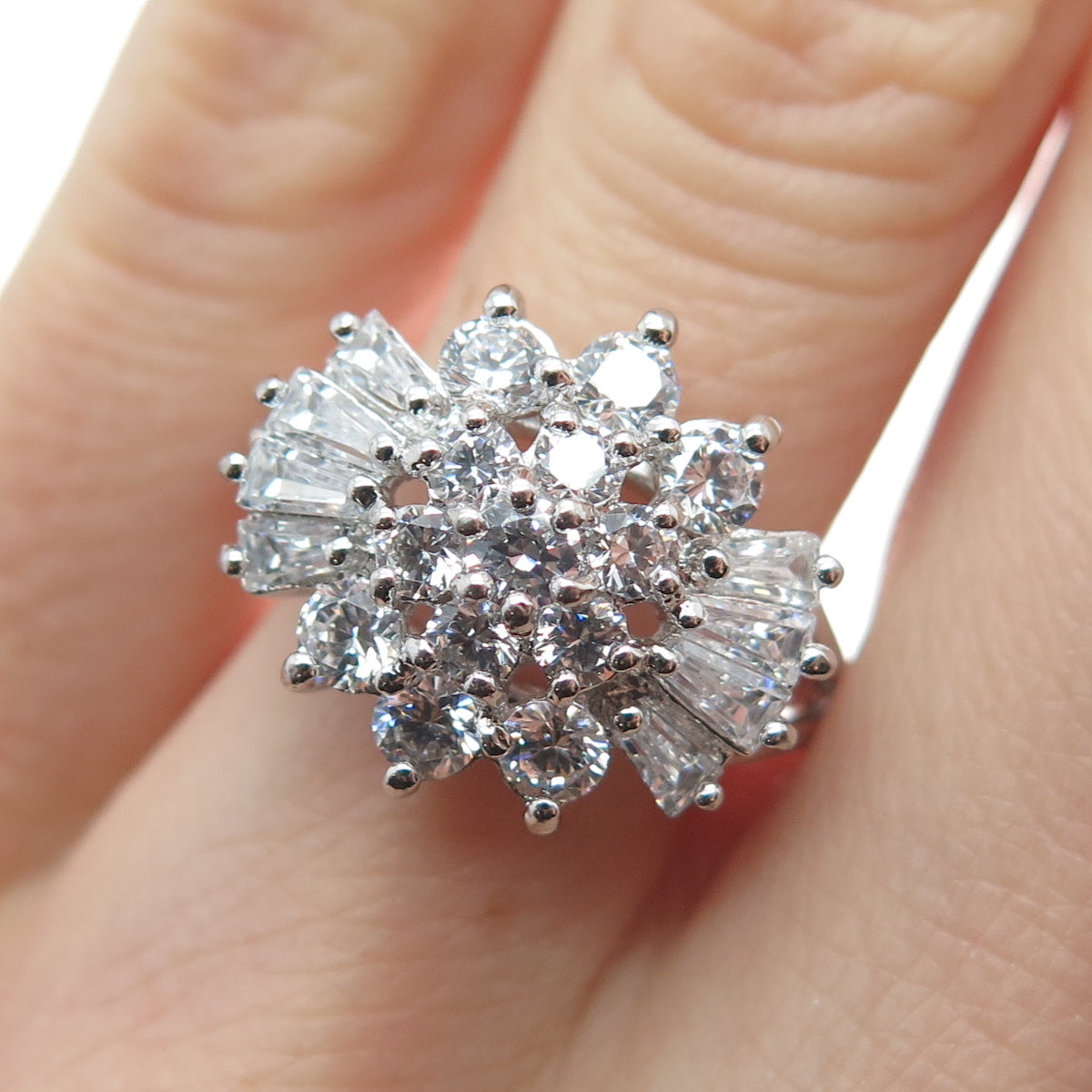 DIADEMA 925 Sterling Silver Round & Tapered Baguette-Cut Shaped C Z Ring Size 7