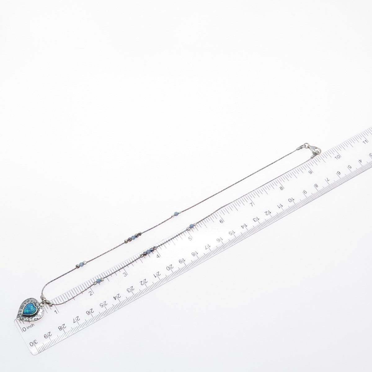 DIDAE 925 Sterling Silver Vintage Israel Real Opal Heart Chain Necklace 18"