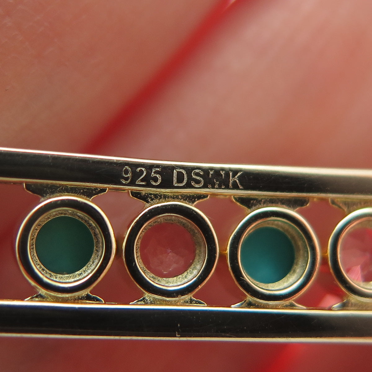 DSMK 925 Sterling Gold Plated Real Turquoise & C Z Cable Chain Necklace 18-20"