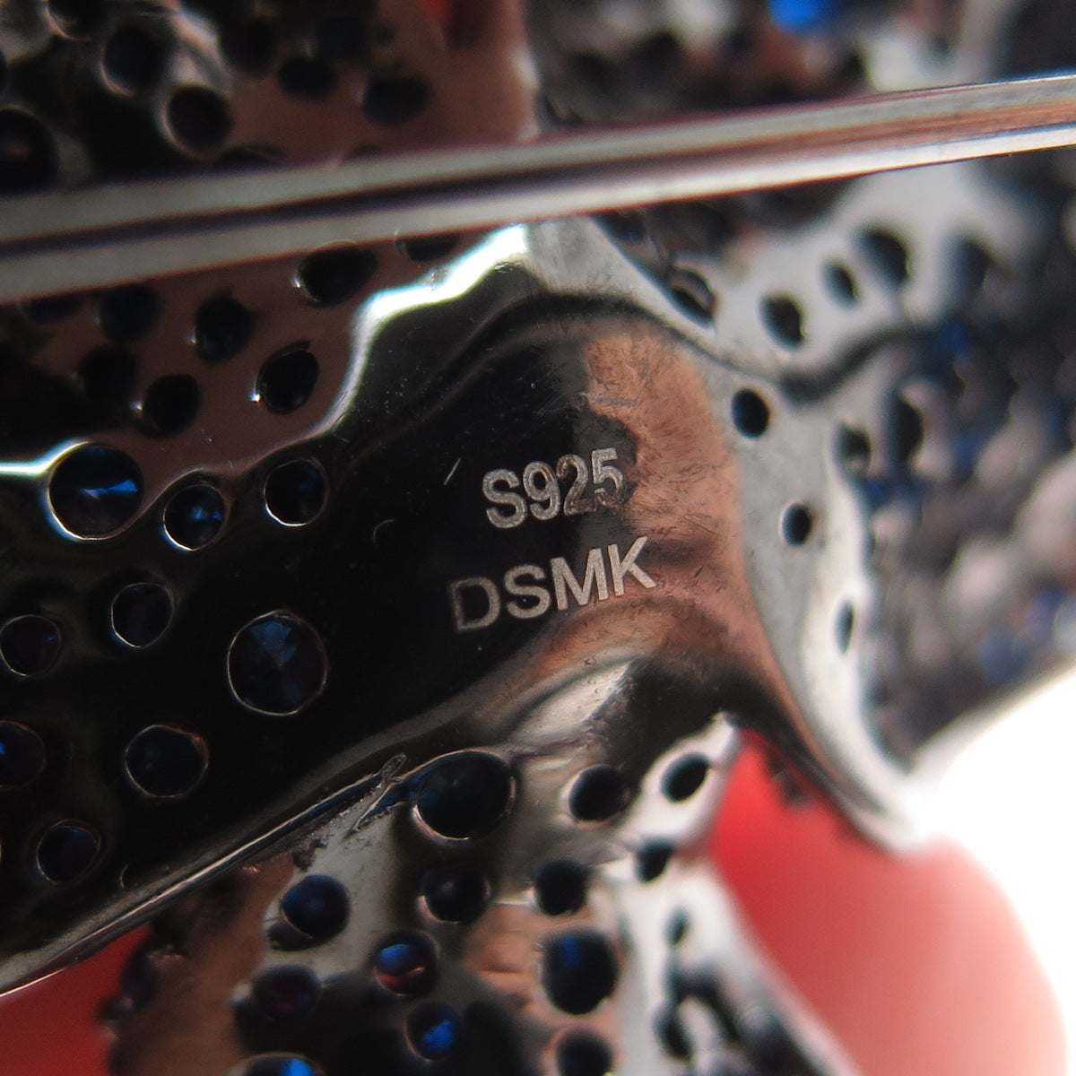 DSMK 925 Sterling Silver 2-Tone Black Rhodium Blue & White C Z Flower Pin Brooch