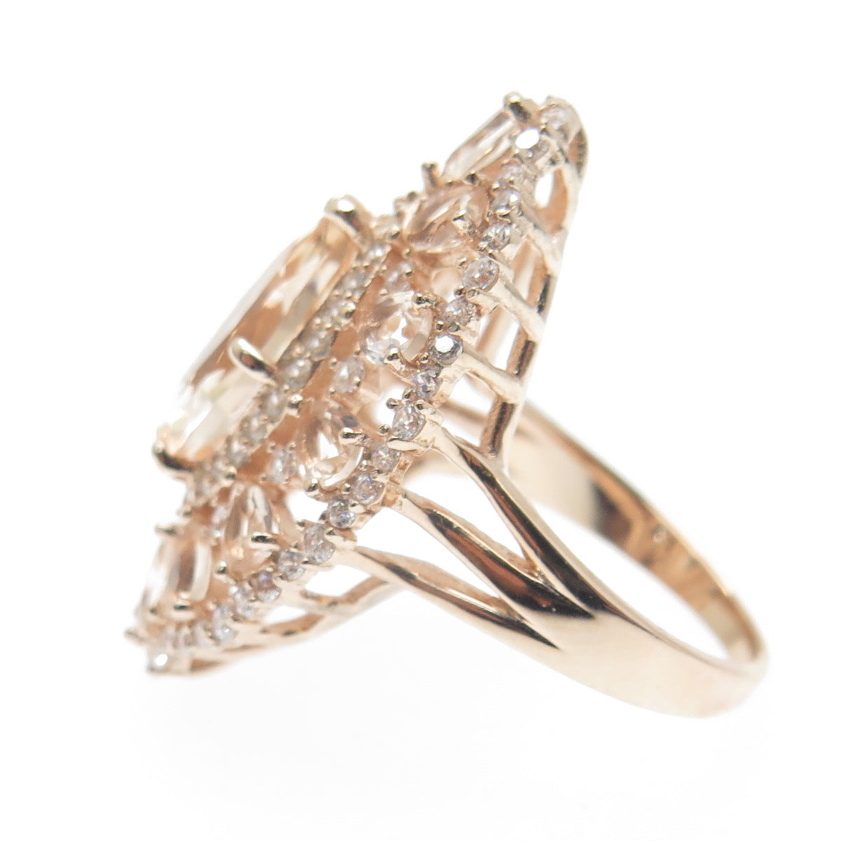 DSMK 925 Sterling Silver Gold Plated Morganite Gem C Z Statement Ring Size 7.25