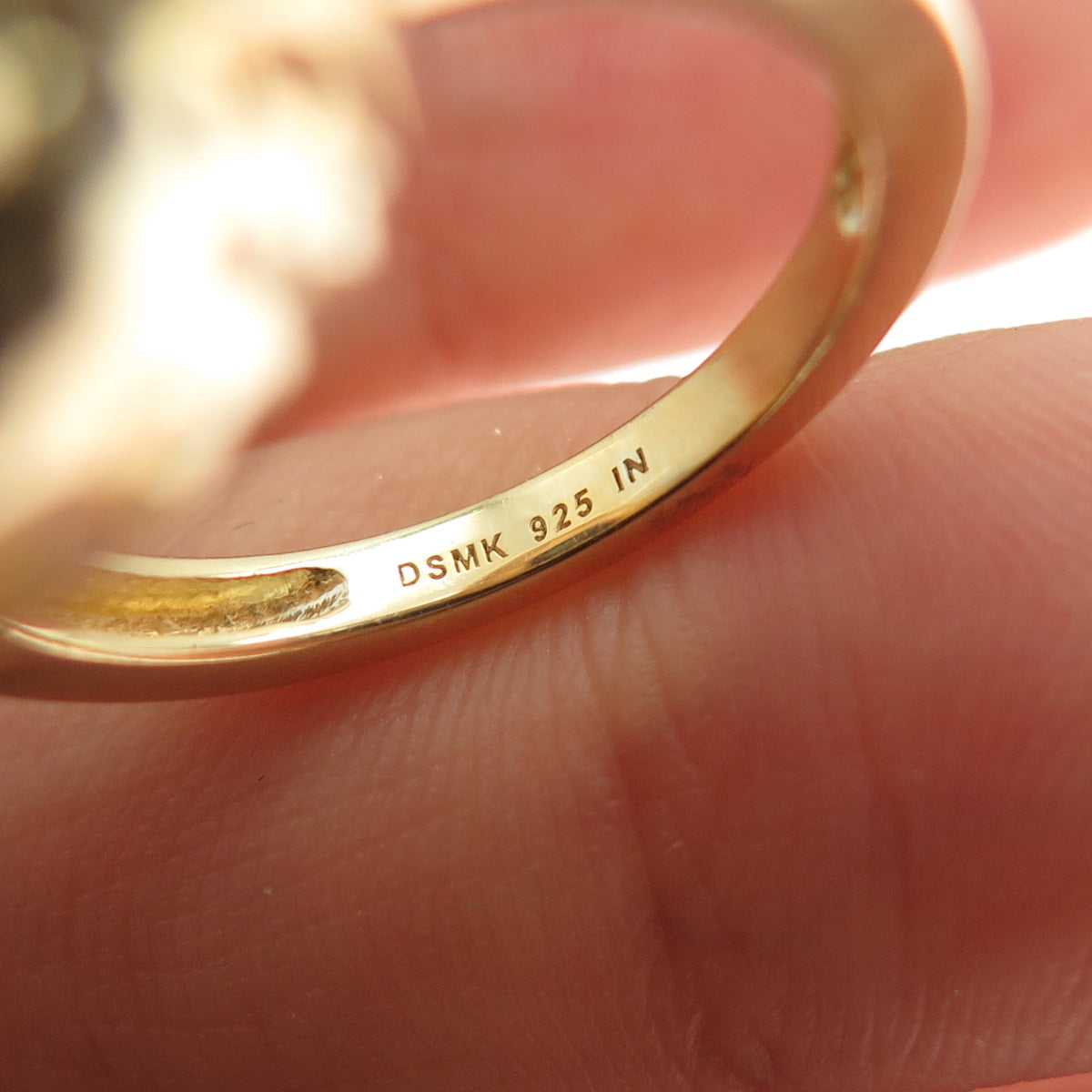 DSMK 925 Sterling Silver Gold Plated Real Diamond & Sapphire Ring Size 7