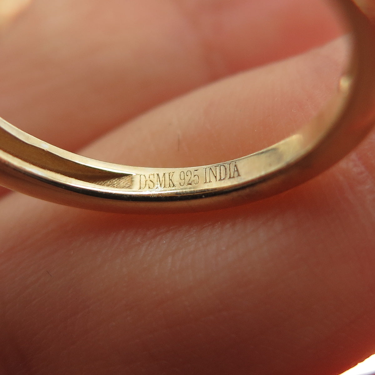 DSMK 925 Sterling Silver Gold Plated Real Diamond & Sapphire Ring Size 7.25