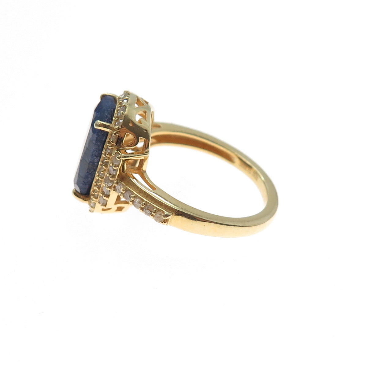DSMK 925 Sterling Silver Gold Plated Real Diamond & Sapphire Ring Size 9.25
