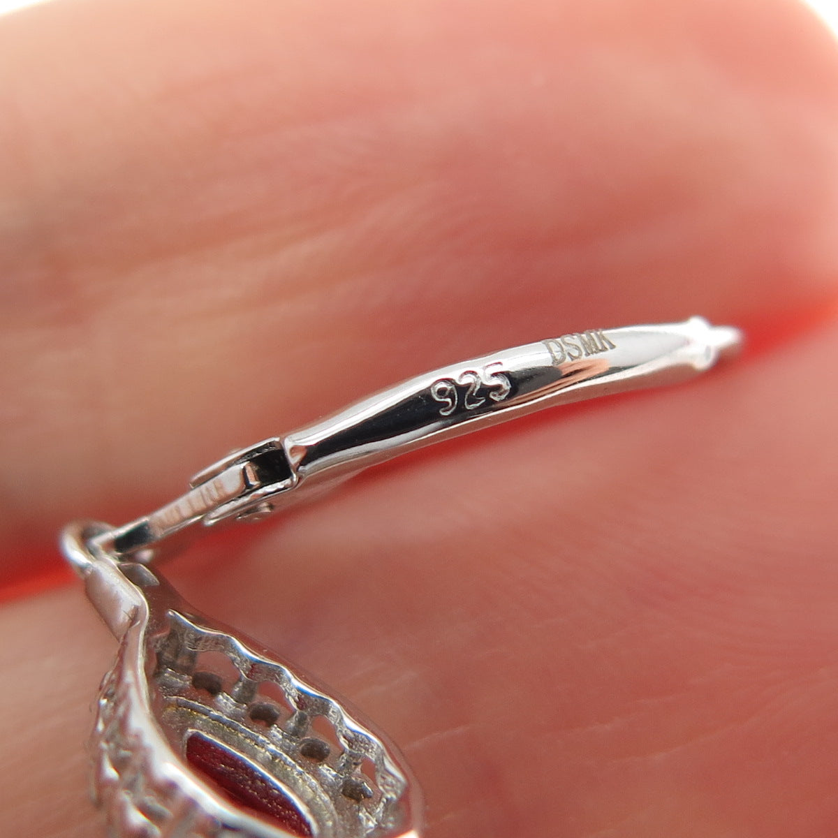 DSMK 925 Sterling Silver Real Red Garnet & C Z Teardrop Dangle Earrings