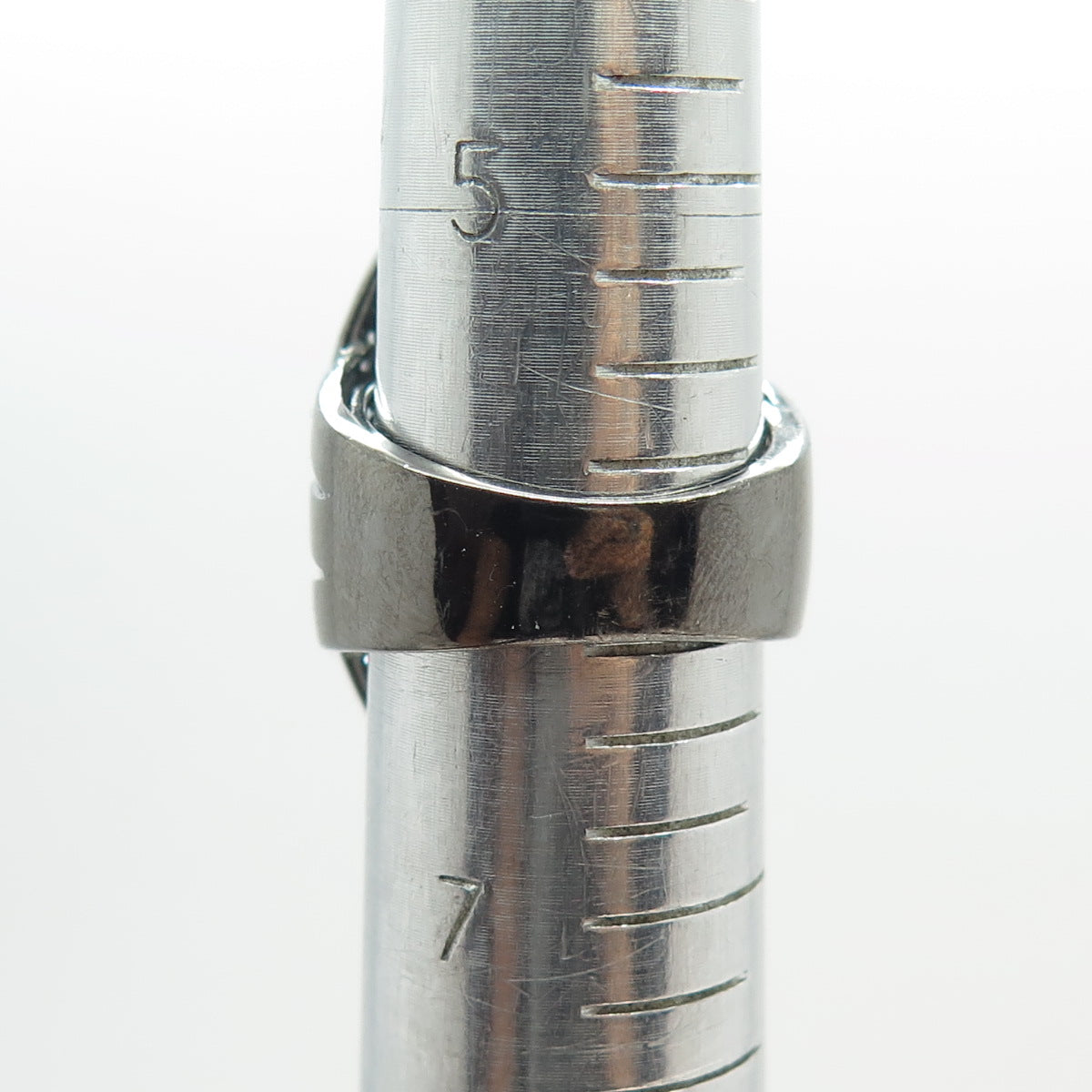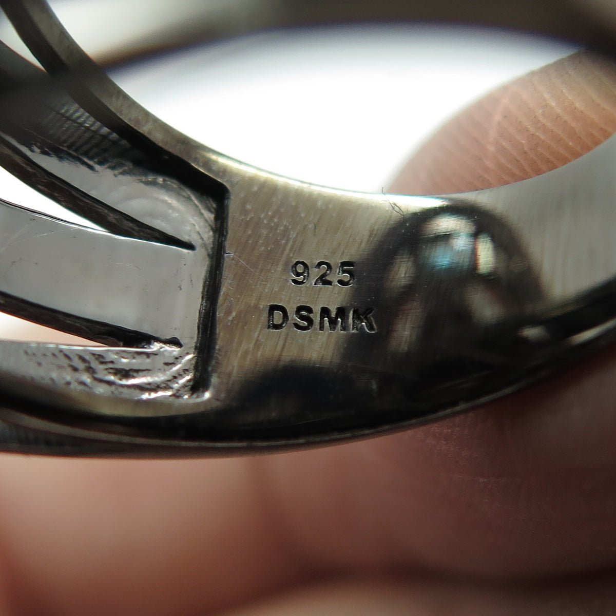 DSMK 925 Sterling White Blue & London Topaz Oxidized Statement Ring Size 6.25