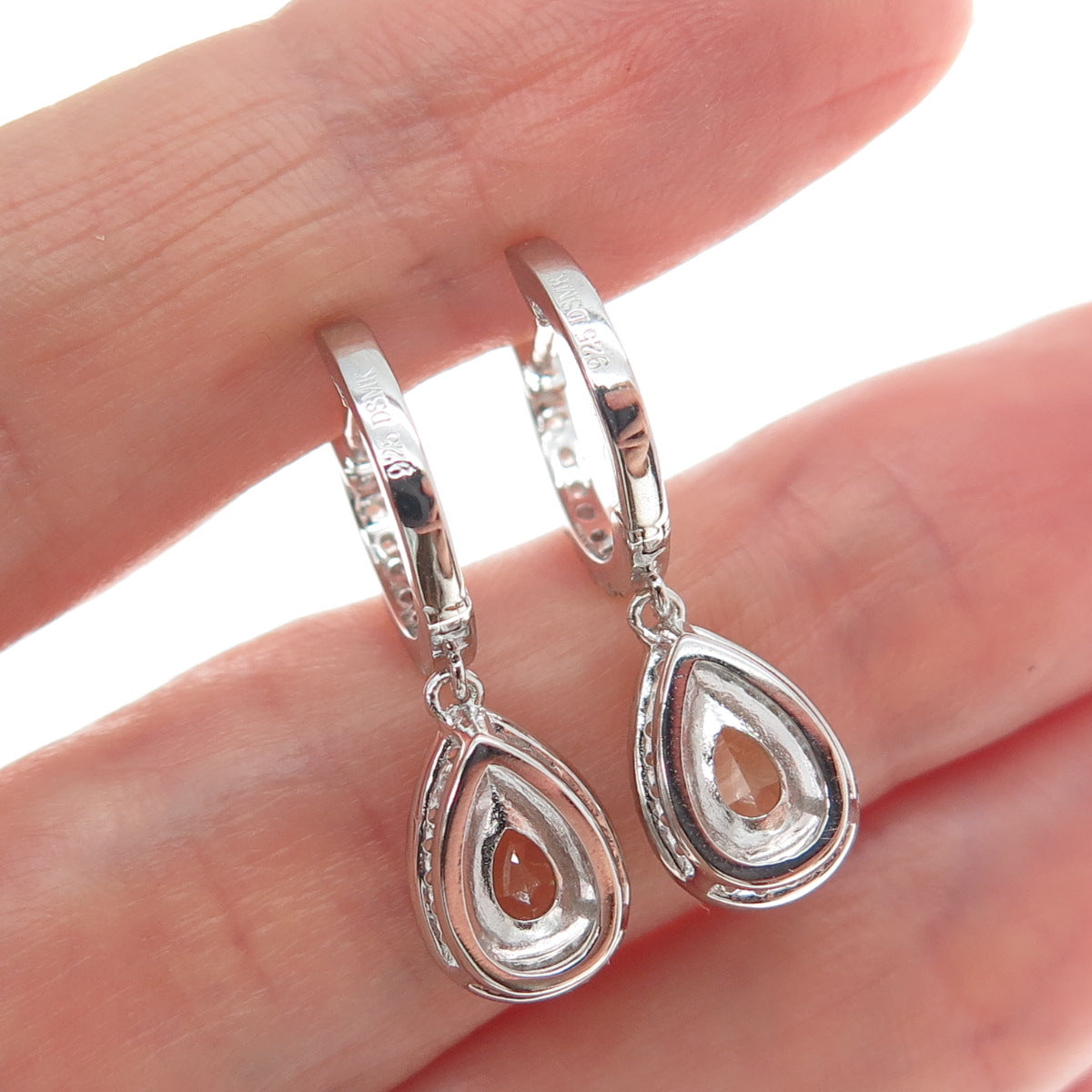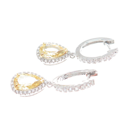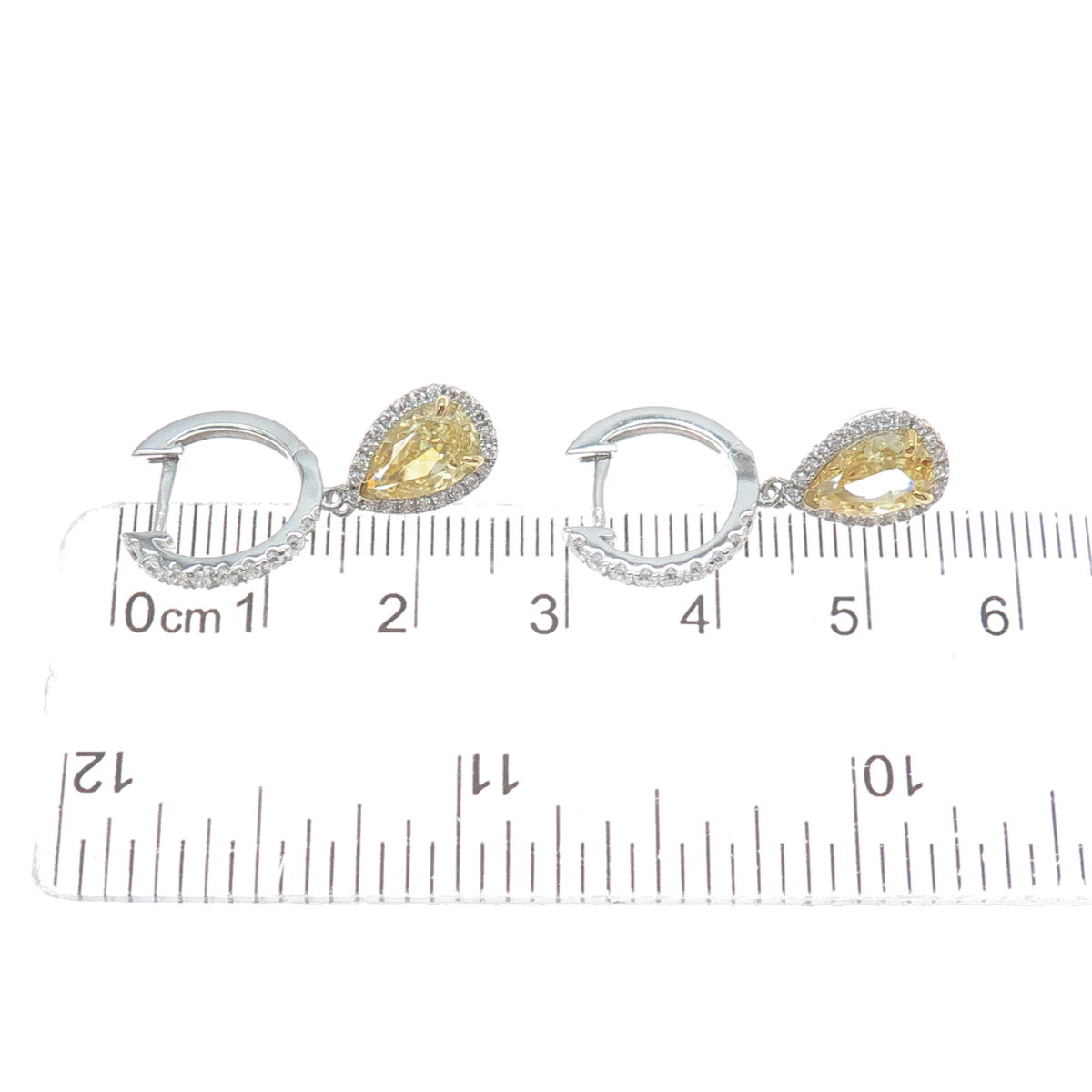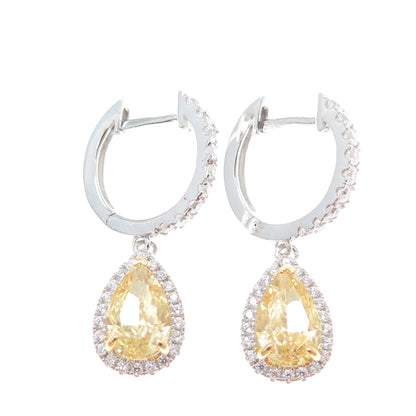 DSMK Sterling Silver Pear-Cut Canary & Round-Cut White C Z Hoop Dangle Earrings