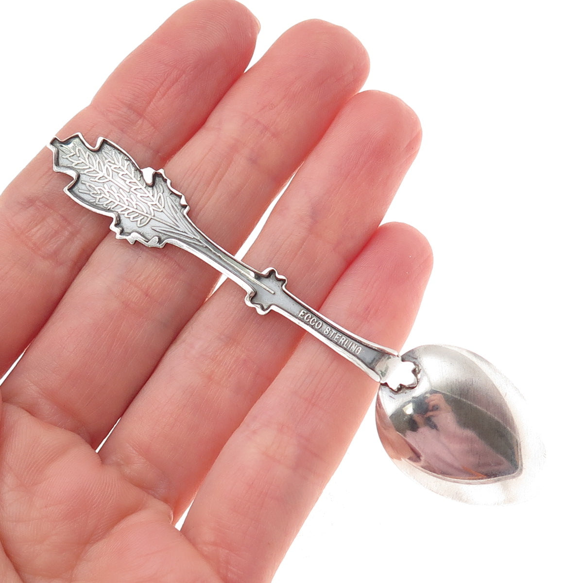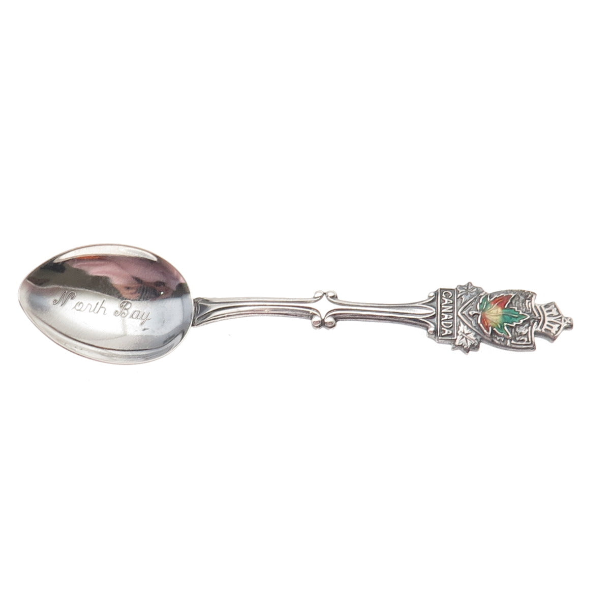ECCO 925 Sterling Silver Antique Art Deco Enamel Canada Maple Leaf Coffee Spoon
